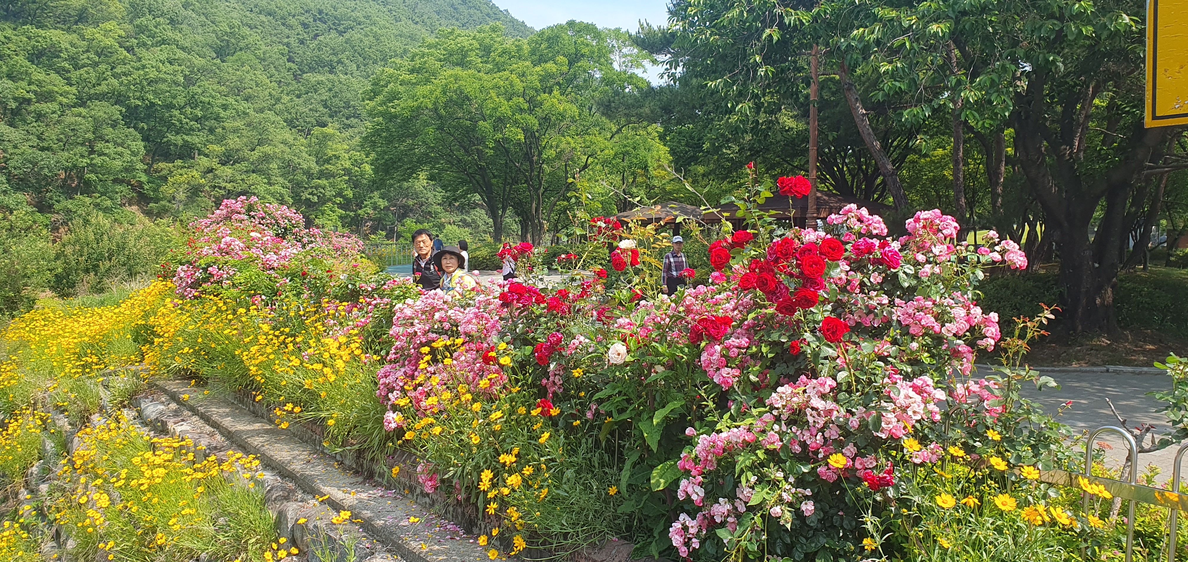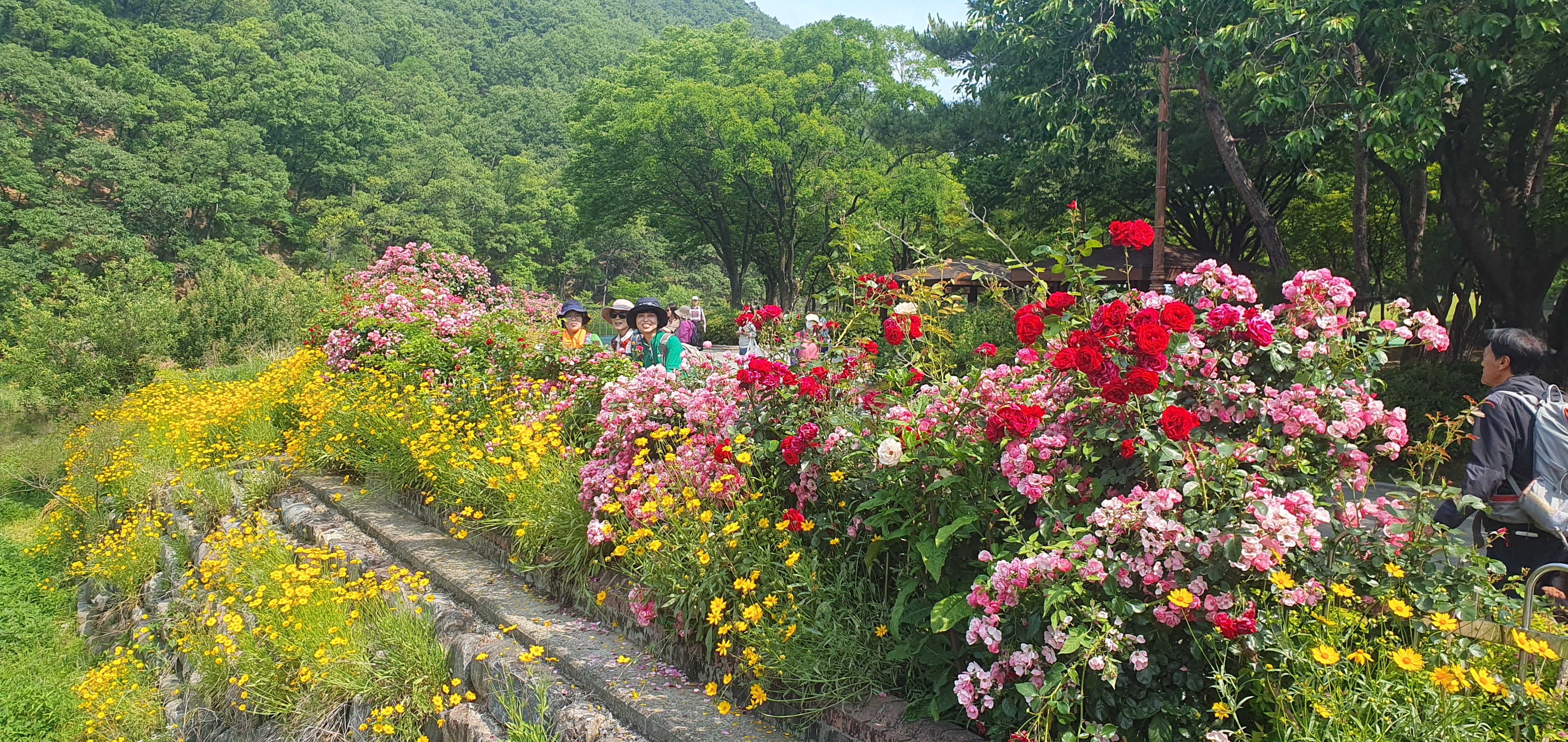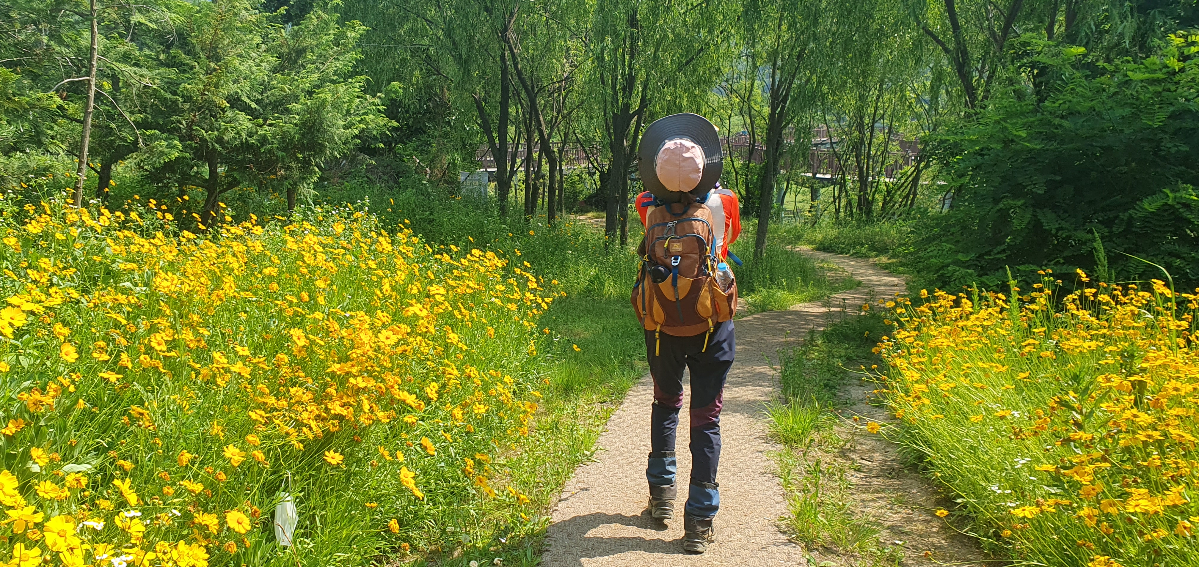 꽃길을 걸어면서 수변주차장으로 이동하고 있습니다