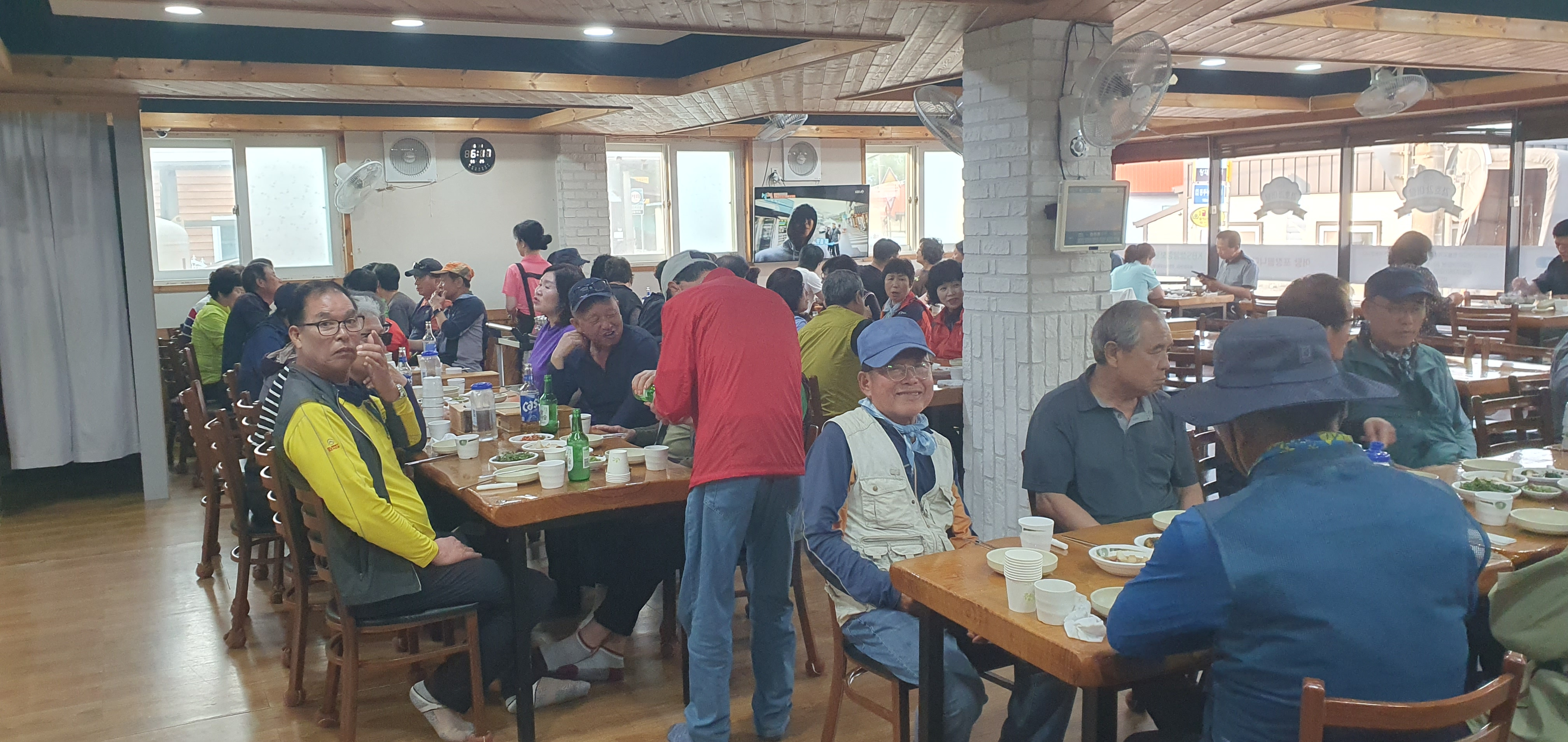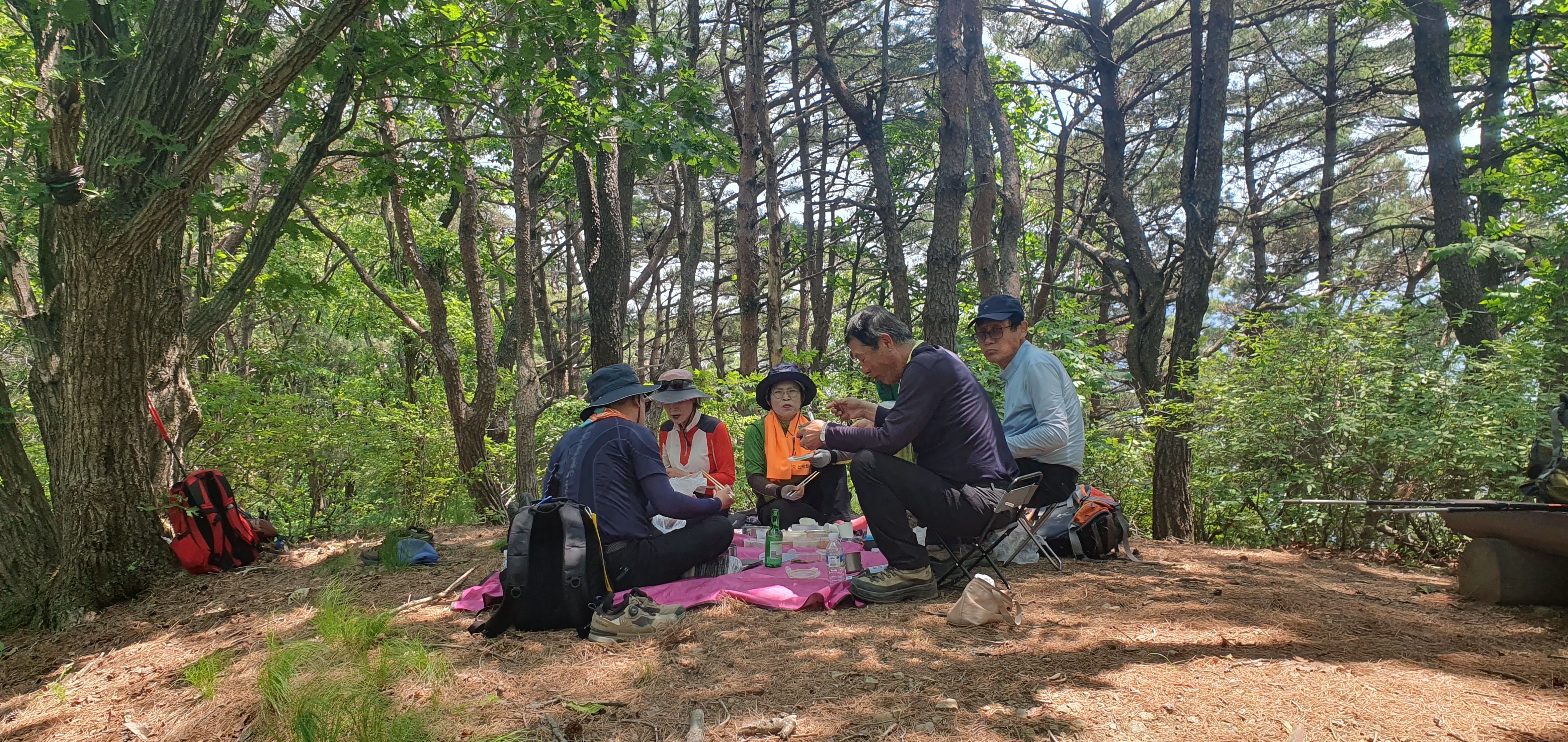 점심을 맛있게 먹고 있는 산우들