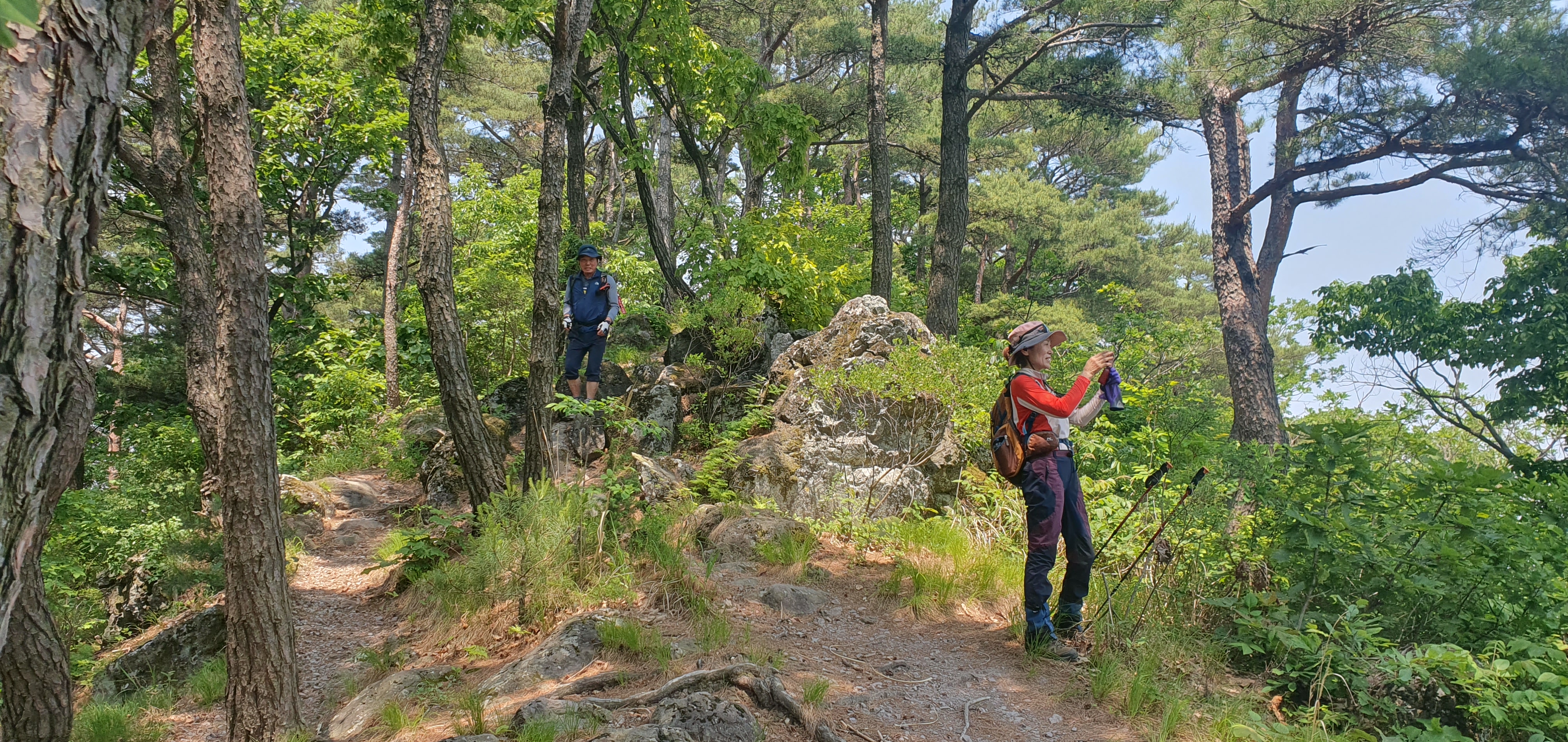 청룡산 암릉바위에서 A 팀이 흔적을 남기고 있습니다