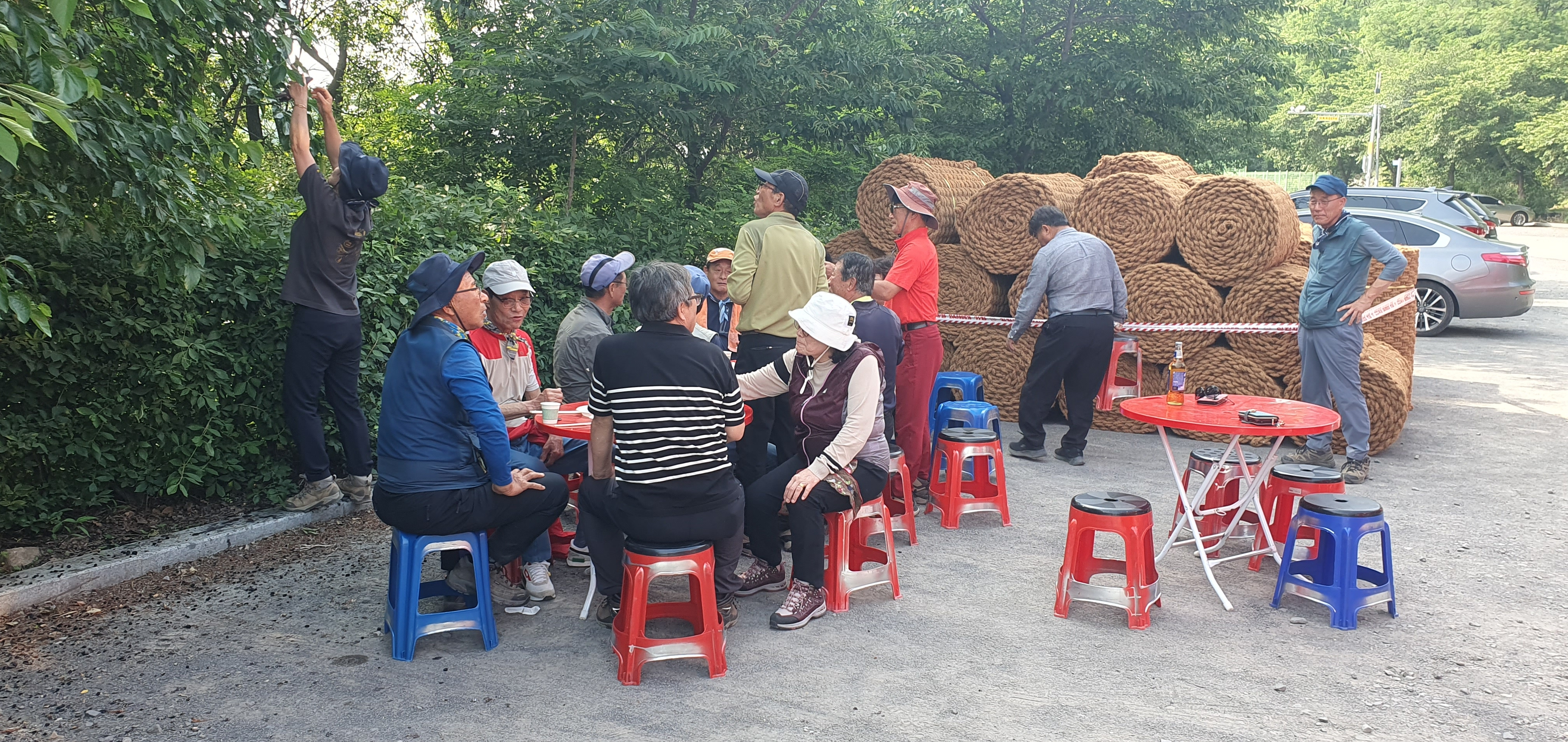 나무그늘에서 쉬고 있는 산우들