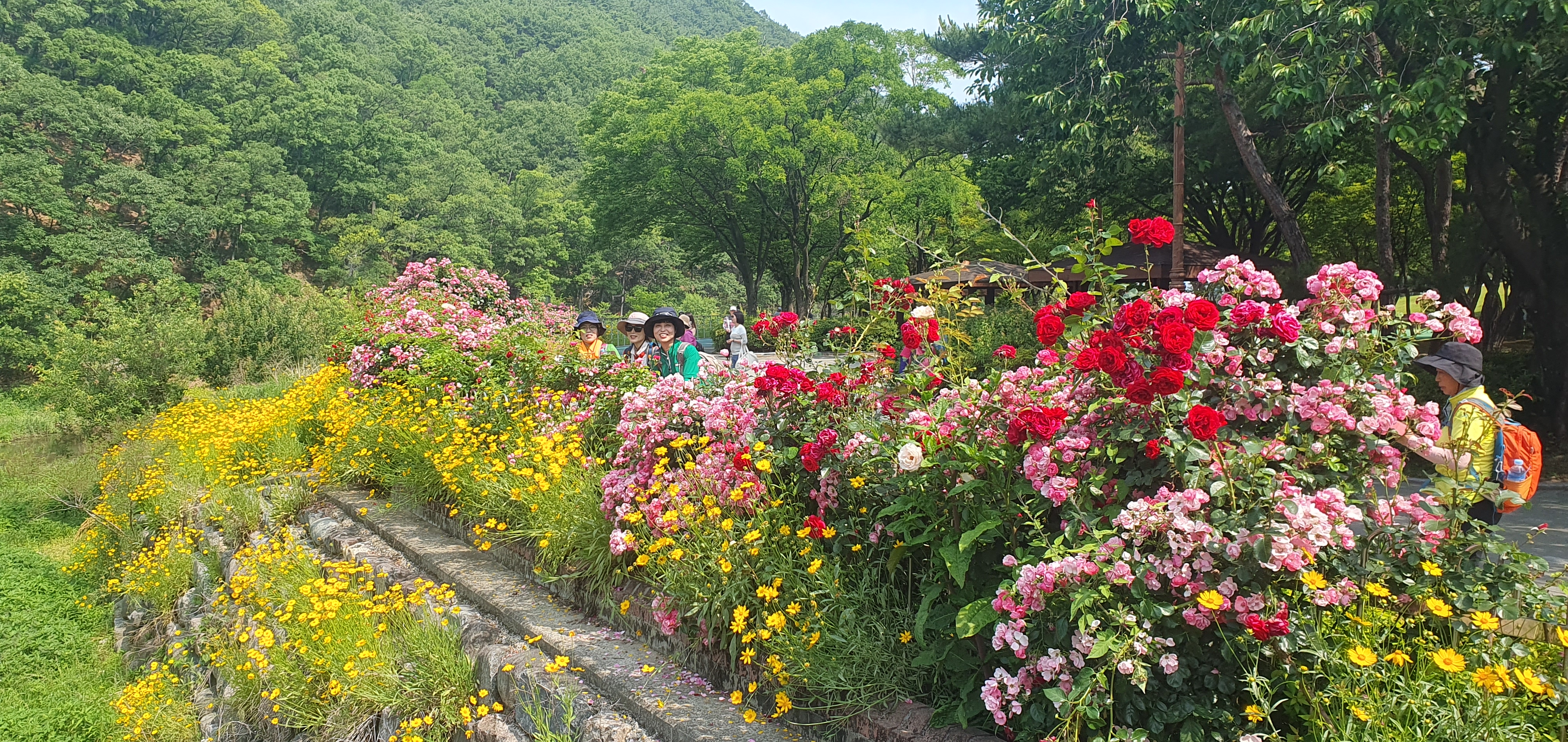 꽃과 어울려 보는 여 산우들
