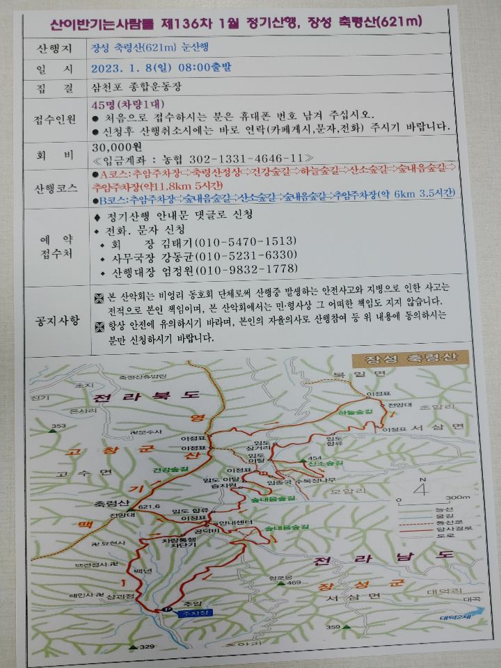 개인준비물 : 반찬, 생수, 동절기산행용품, 아이젠 등