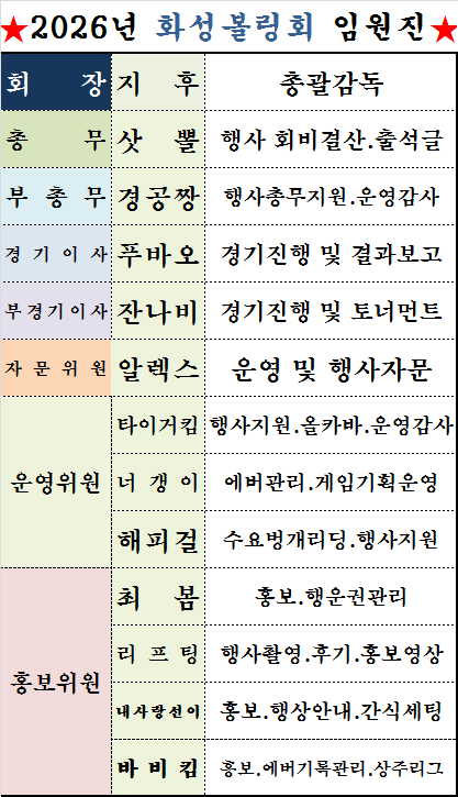 작성자코스모스. 작성시간 25.01.04 모든 임원의 담당이 정해져있고 너무 좋네요.한해동안 잘 부탁드립니다.