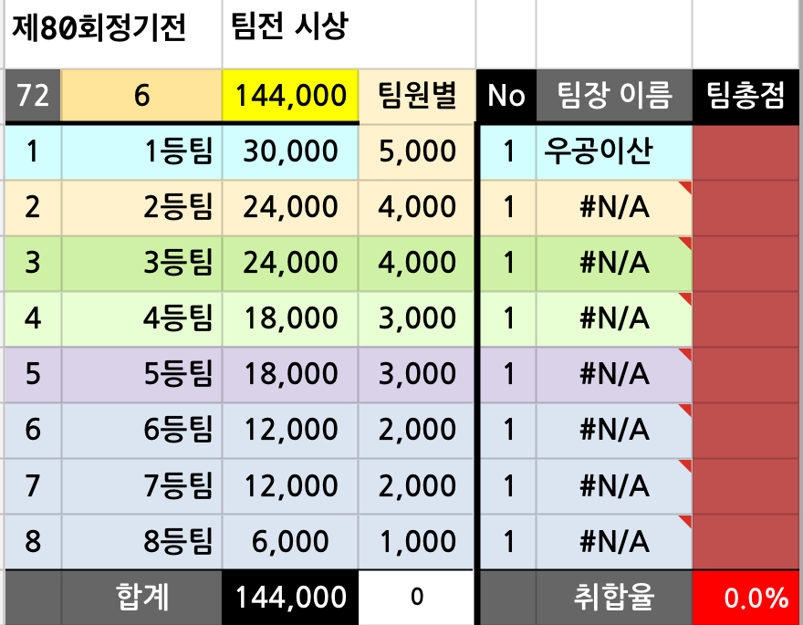 ☆정모회비 24,000원(5게임+팀전비+간식+적립금)