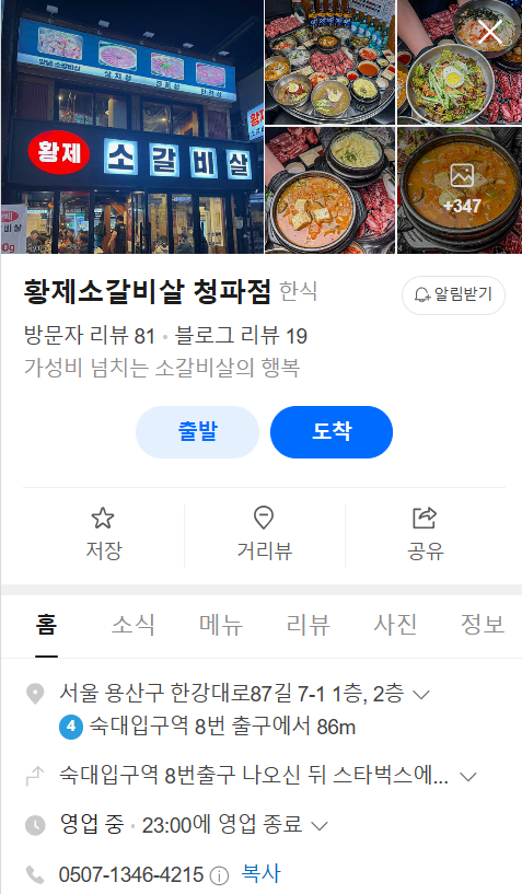 4) 모임 장소 : 황제소갈비살 청파점 2층 (숙대역)