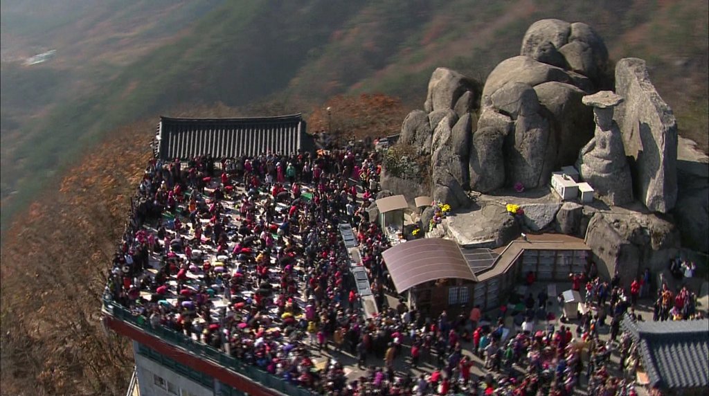 사진에서 보는 바와 같이 자녀들의 원하는 대학에 가기를 빌기 위하여 많은 사람들이 모였다. 다 자식들이 잘되기를 비는 부모의 마음이다,