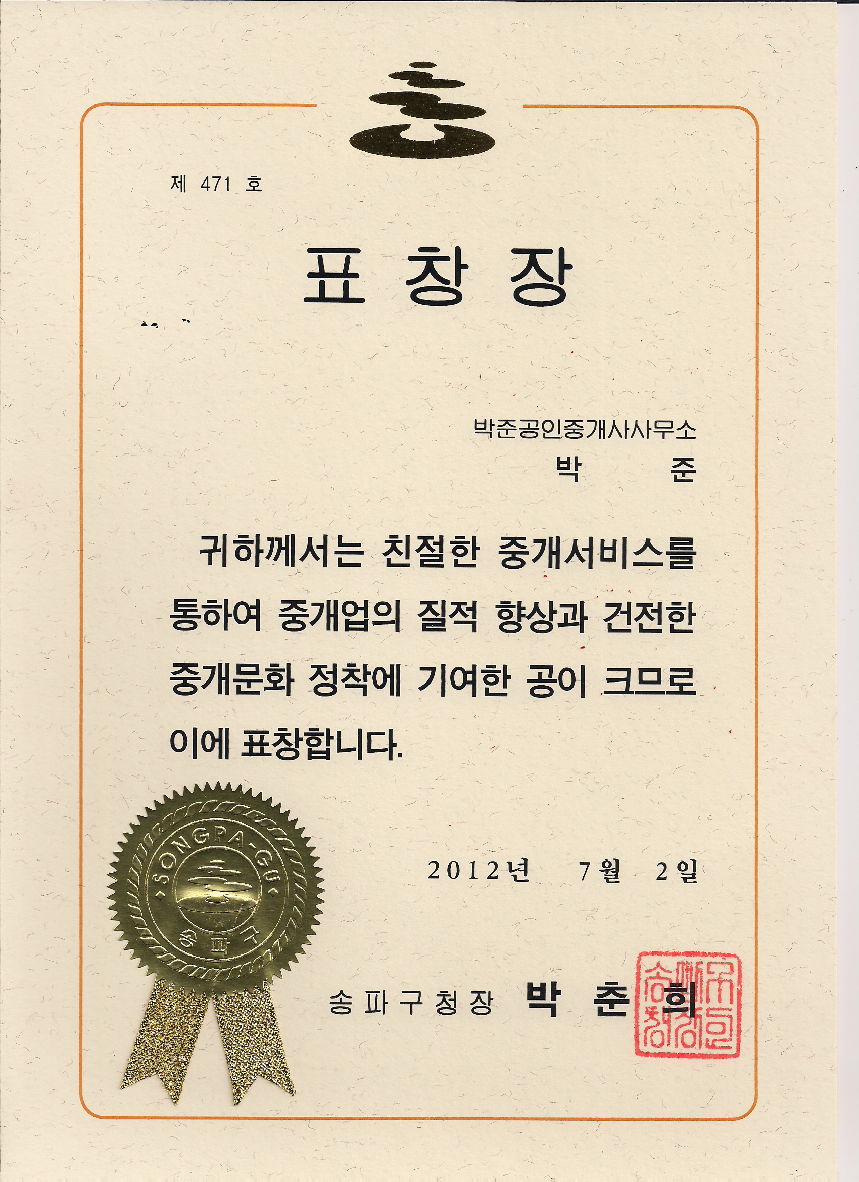 *** 소중한 인연 *** 잠실박사 박준공인 중개사 ***