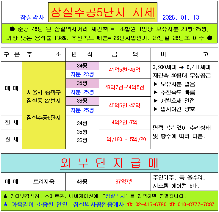 ★잠실주공5단지 34평 급매 = 41억5천만원★
