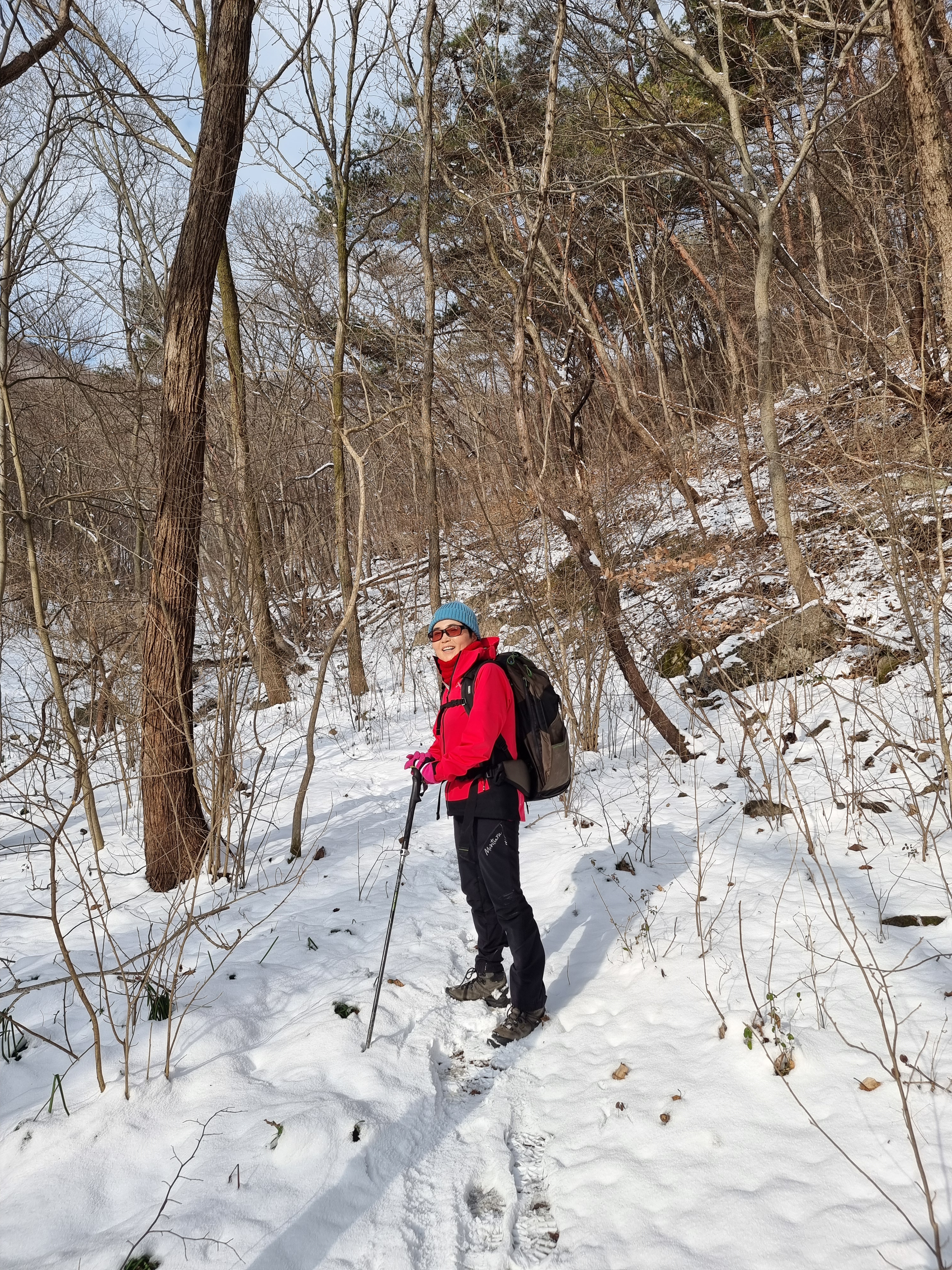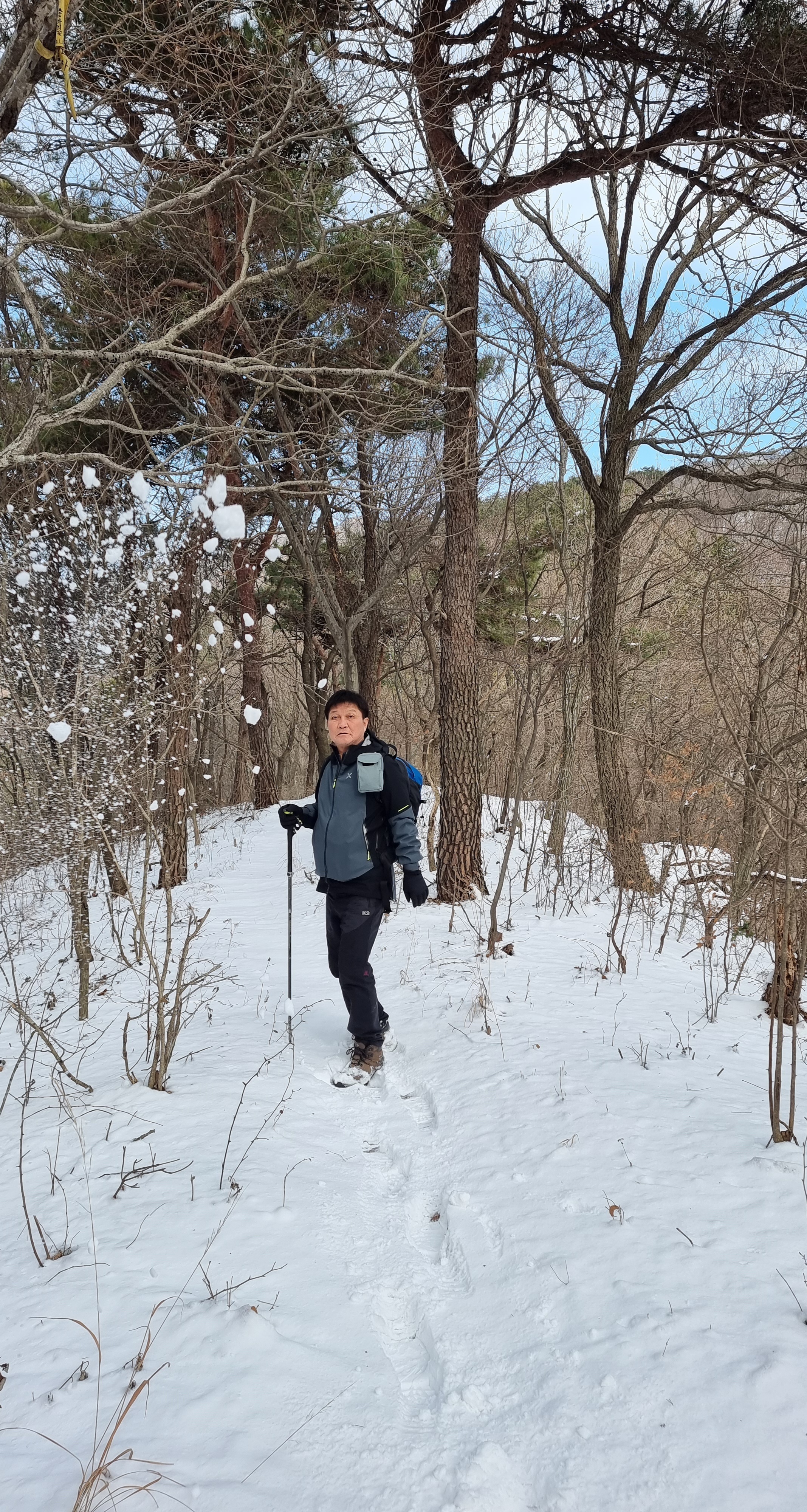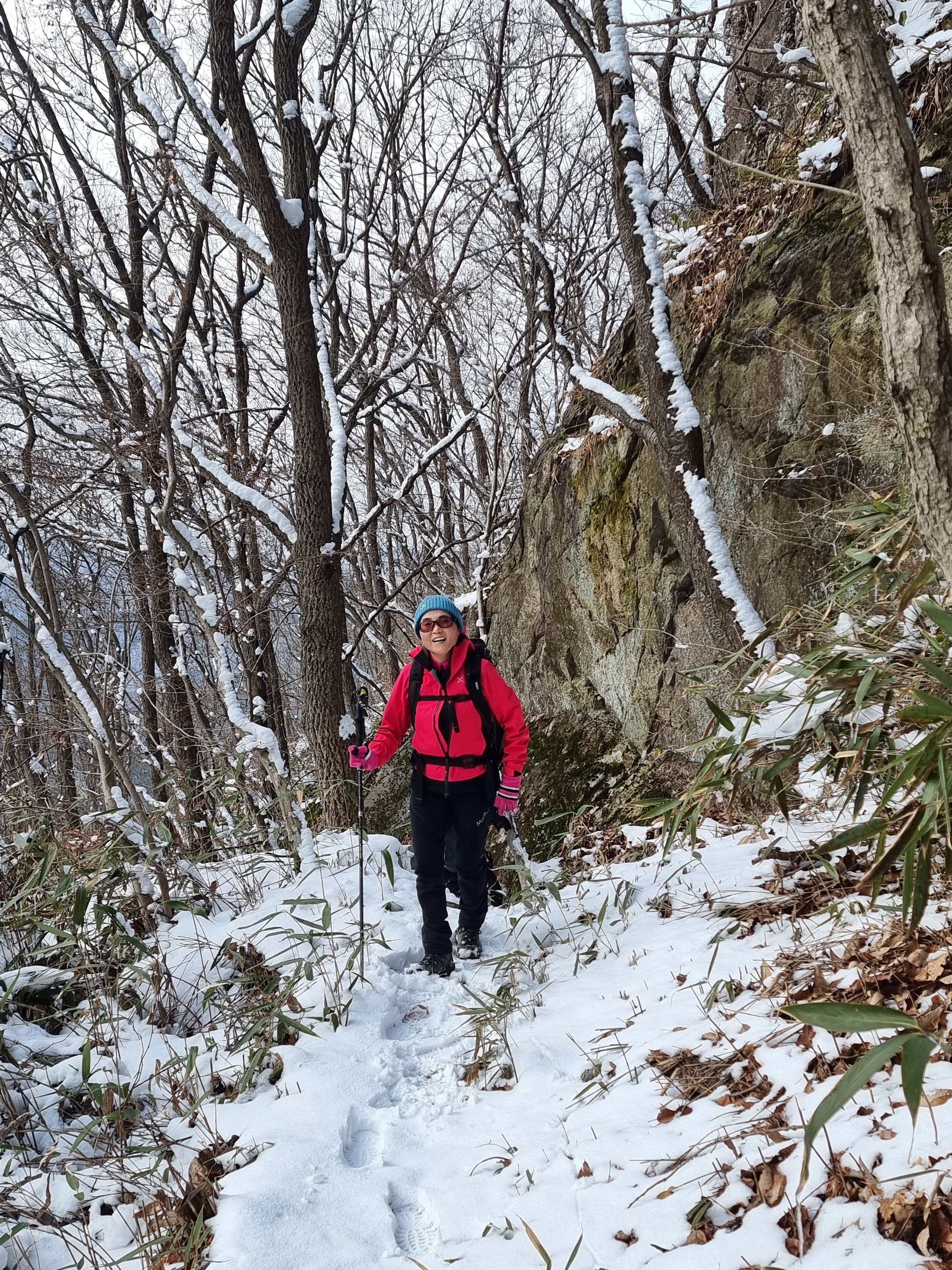 좁은 오솔길로 들어서니 새벽에 내린 눈이 발목을 넘게