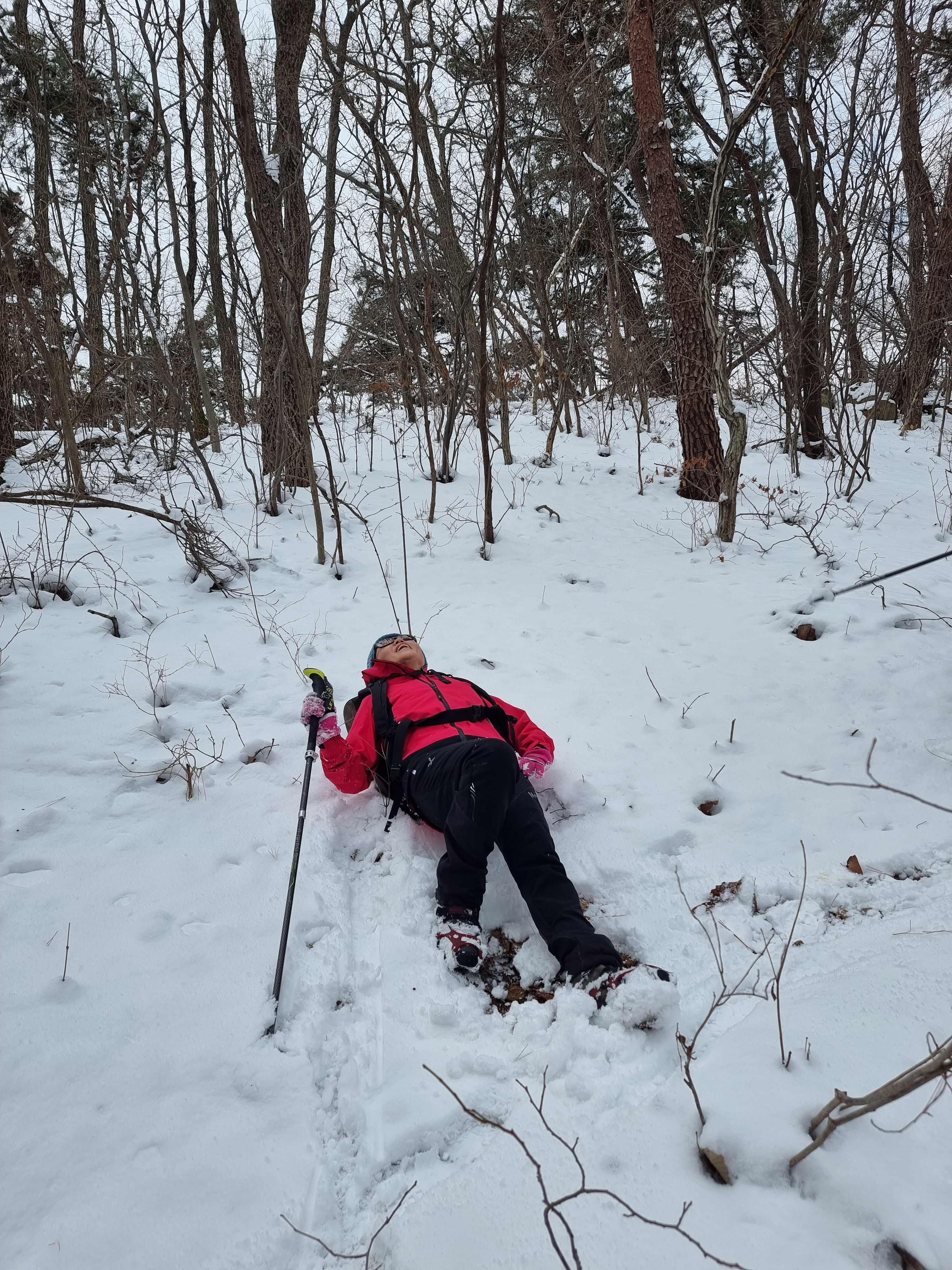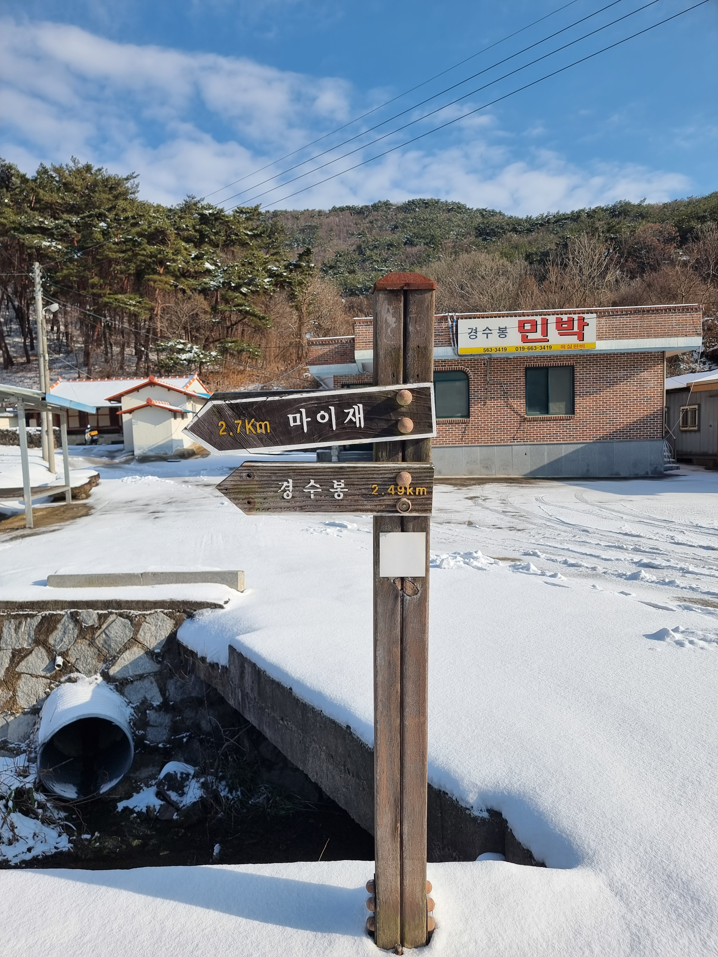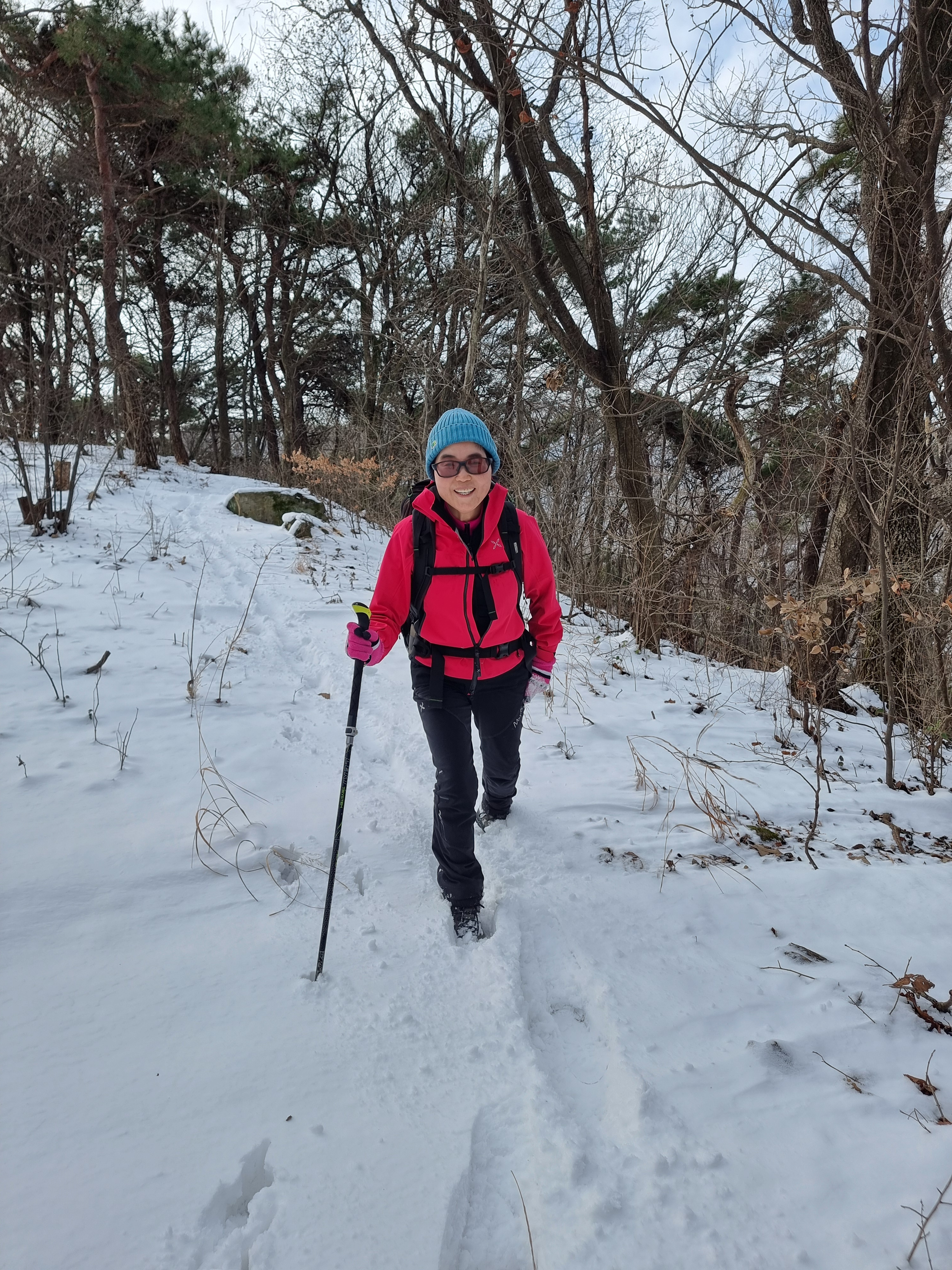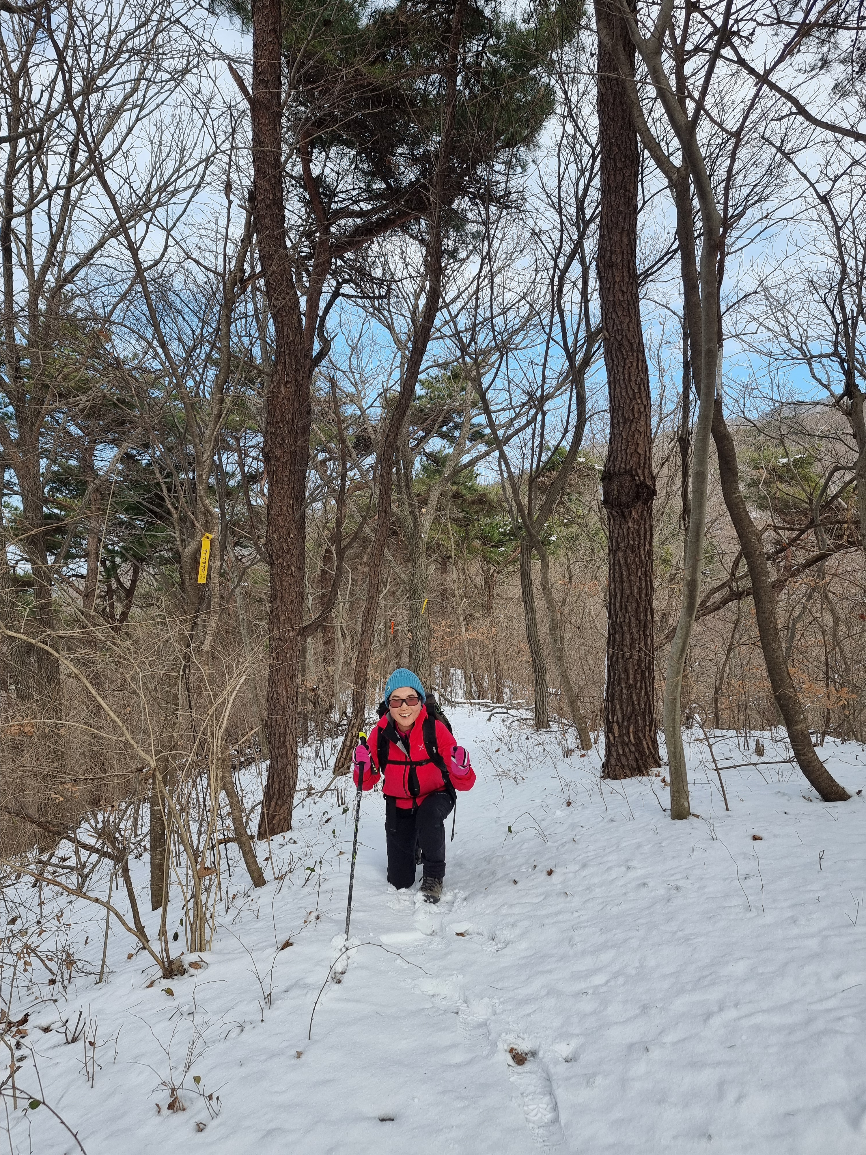 좁은 오솔길로 들어서니 새벽에 내린 눈이 발목을 넘게