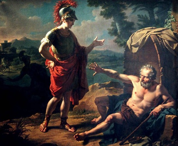 안티스테네스의 후계자는 디오게네스로서, 그는 모든 전통과 관습을 비웃었다. 그는 씻지도 않고, 더러운 외투를 걸치고 다니면서 사람들을 곤혹스럽게 했다. 한 마디로 노숙자처럼, 개처럼, 통속에서 살았다. 어느 날 알렉산드로스 대왕이 디오게네스가 거처하는 항아리 통속 주거지를 찾아왔다. 대왕이 물었다. “내가 너를 위하여 해 줄수 있는 것이 무엇인가?” 디오게네스는 “햇빛을 가리지 마시오!”