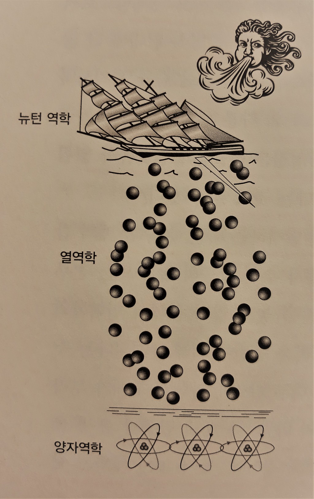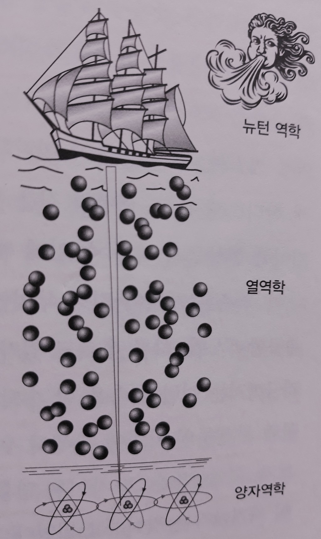 생명은 거센 폭풍이 부는 바다 위를 항해하는 배와 비슷하다. 이 배에는 거의 40억 년의 진화로 다듬어진 유전 프로그램이라는 노련한 선장이 타고 있어서 다양한 깊이의 양자 영역과 고전 영역을 항해할 수 있다. 생명은 폭풍우를 피하기보다는 끌어안는다. 분자의 돌풍과 강풍을 모아서 돛을 부풀리는 것이다. 그렇게 생명이라는 배는 좁은 열역학의 바닷물을 지나서 양자세계와 닿아 생 열역학의 폭풍을 솜씨 있게 다루는 생명의 놀라운 능력에 의해 유지된다.