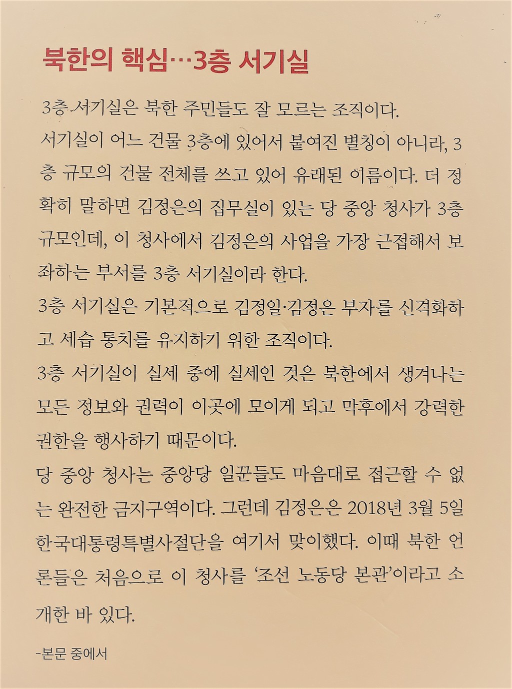 그의 설득에 겨우 용기를 낸 결과가 자서전에 가까운 이 책이다. 많은 사람들이 충격적으로 받아들인 ‘새로운 사실’, 곧 ‘평양 심장부’의 실상과 허상을 드러내는 데 중점을 두긴 했지만 이 책을 통해 내가 기대하는 또 다른 바람이 있다. 내 삶에 녹아 있는 북한의 시대상, 사회상, 생활상과 그 변천사를 한국 사회라는 스크린에 투영하고 싶었다. 북한 사회라는 거울로 보면 한국인 스스로는 알기 힘든 한국의 위상이 비춰진다.