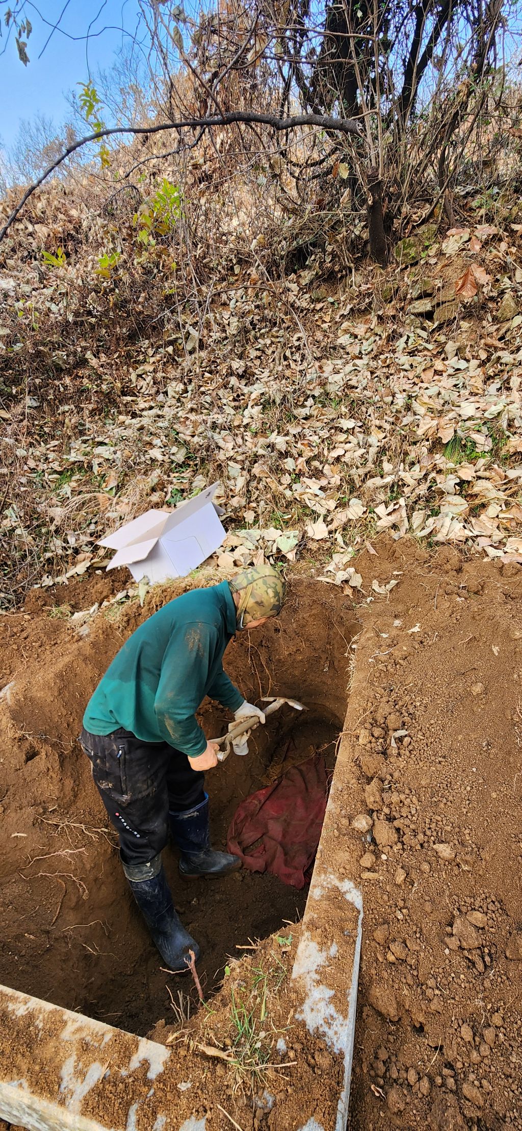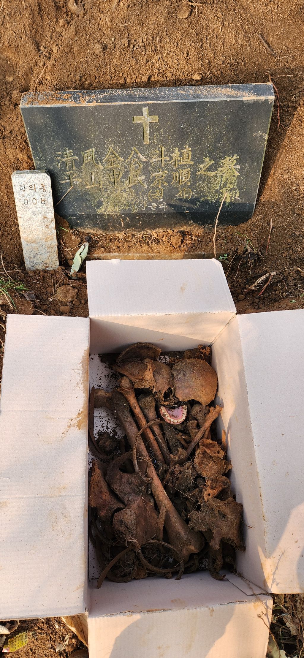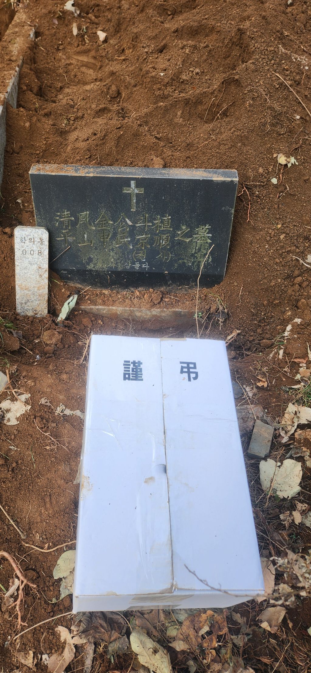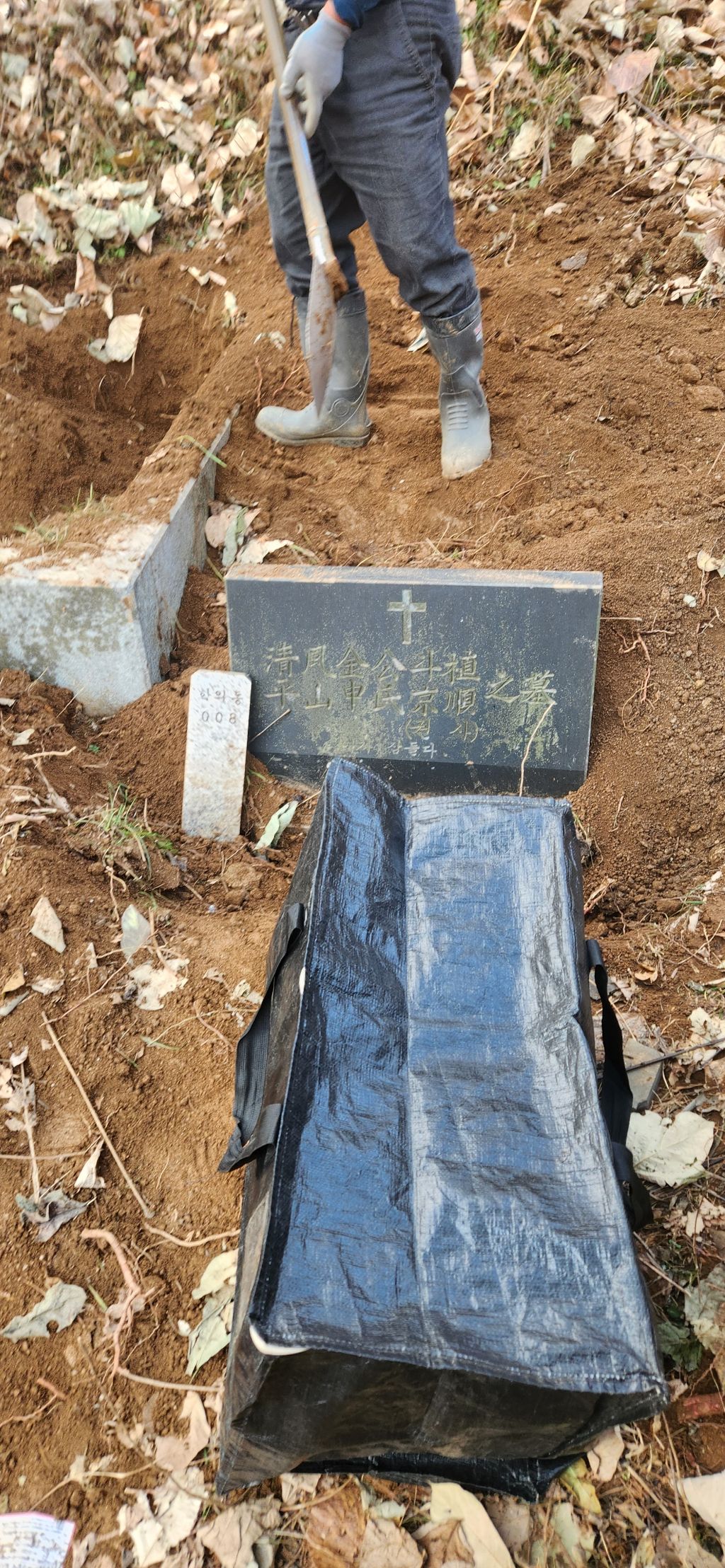 이장 개장 파묘 화장 의왕시 학의동 산14 학의동공설묘지 산소 분묘1기를 파묘하여 유골을 수습하여 종이관에 모셔서 노랑색번호판 운구차