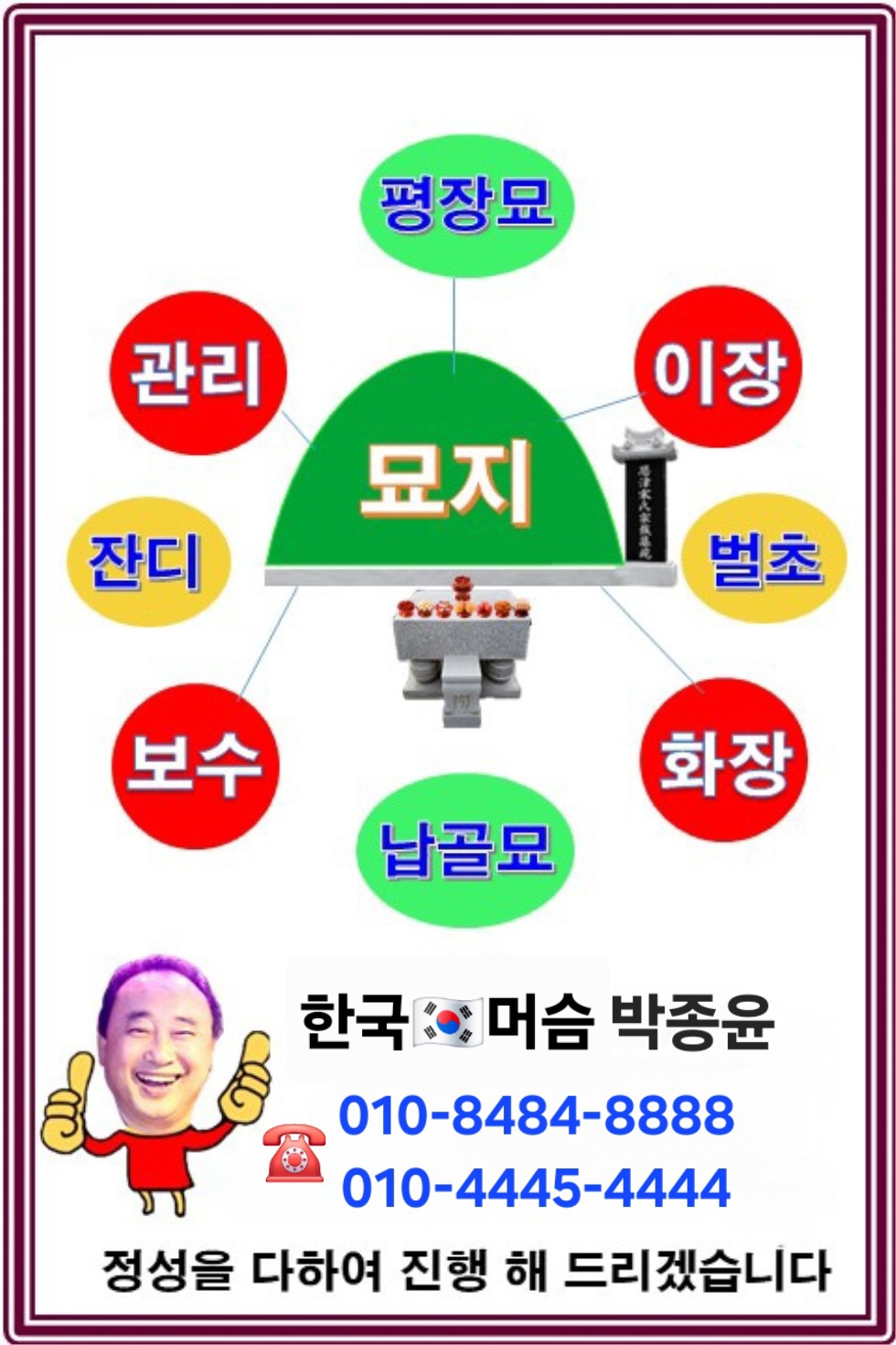 묘지이장 묘지관리 묘지보수 산소관리 산소정리 벌초대행 잔디관리 평장묘 평장납골묘 묘지조성 석물설치 파묘 화장 벌초 예초 유골함 운구차 영구차