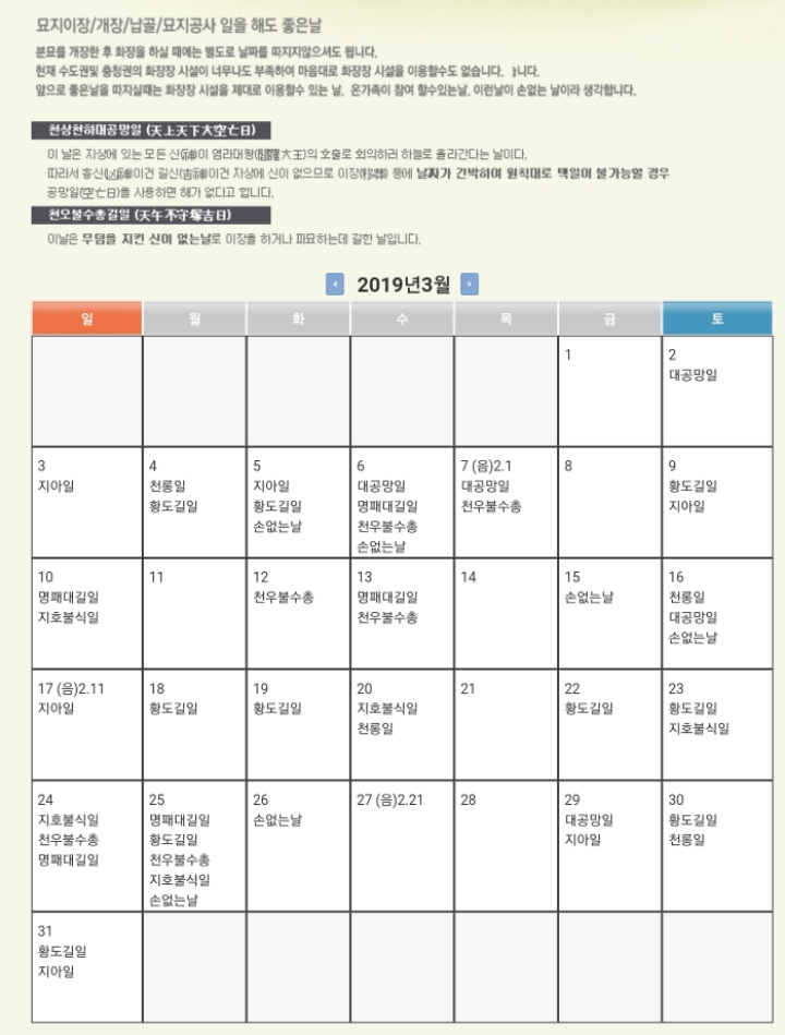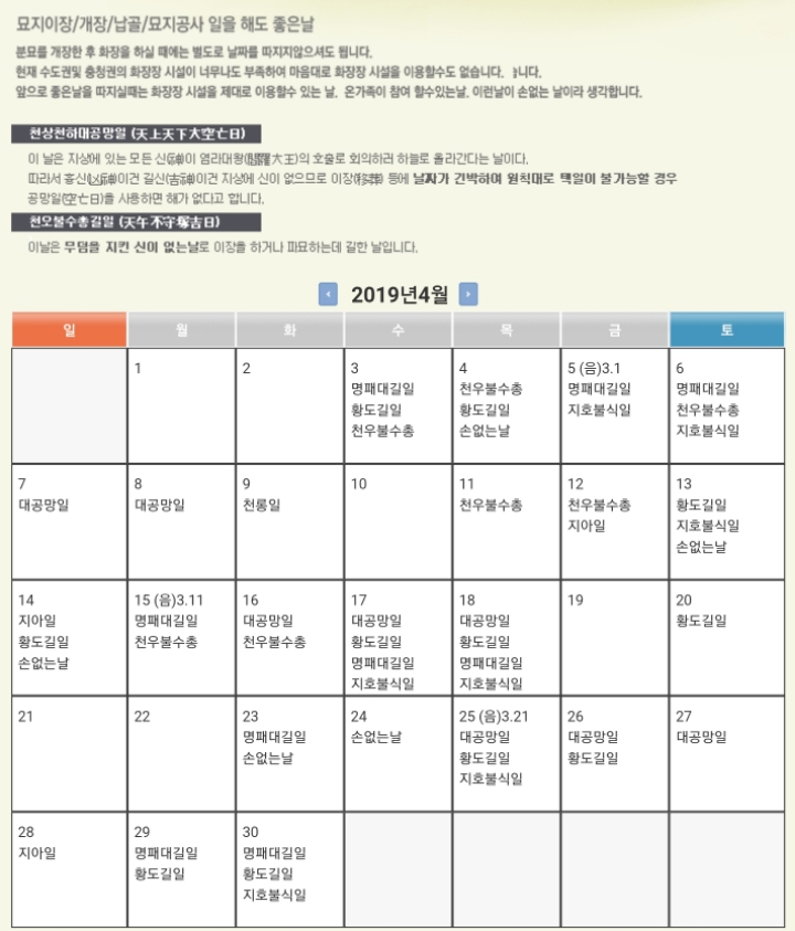 - 묘지 이장/개장하기 좋은 날 -