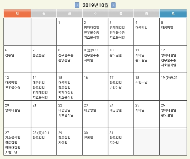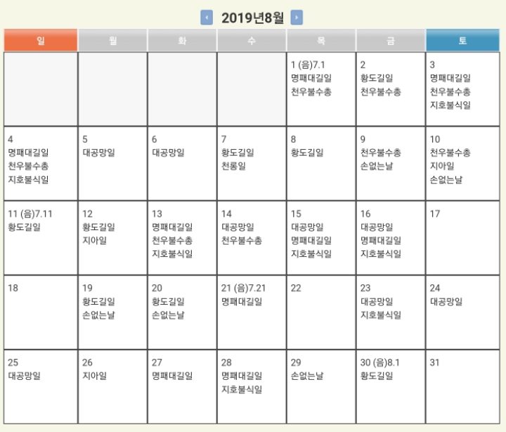 • 황도길일(黃道吉日)