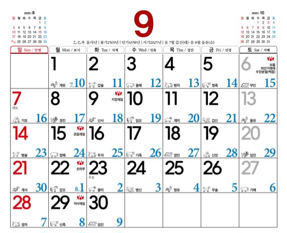 9월23일 8.2 을미(乙未) 黃道吉日, 天牛不守, 大明上吉日,
