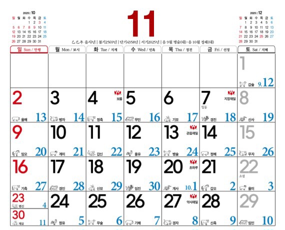 2025년 11월 묘지이장 하기좋은날입니다