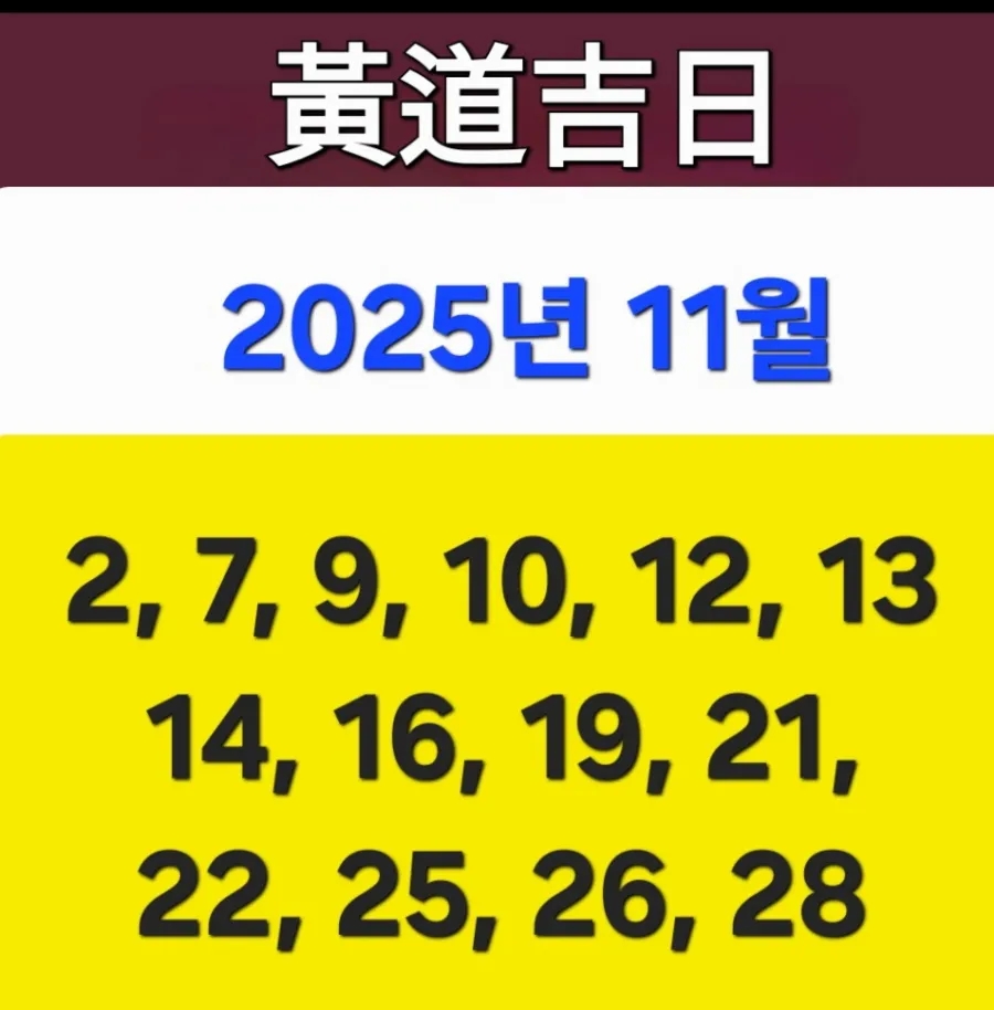 11월28일 10.9 신축(辛丑) 黃道吉日,