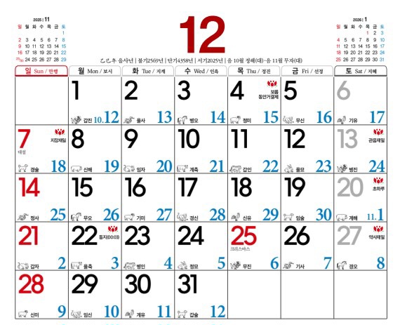 12월12일 10.23 을묘(乙卯) 黃道吉日