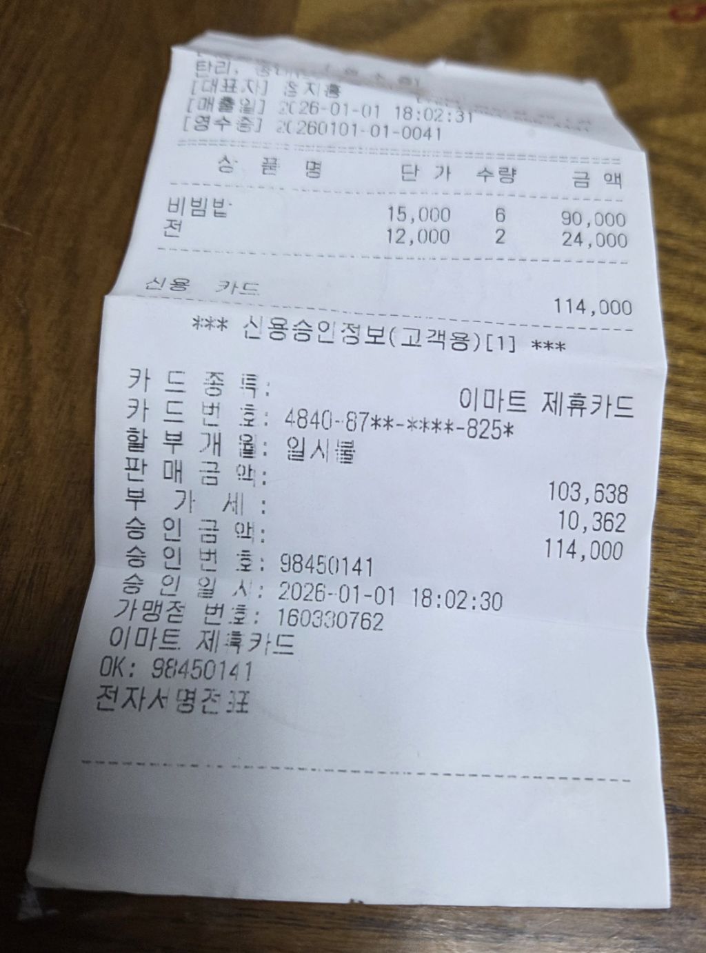 | 2차(장소: 저녁-송내촌) | 114,000원 |