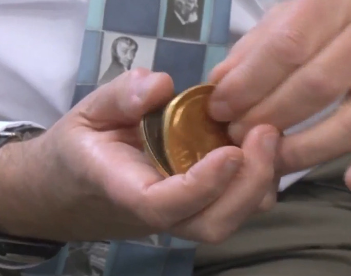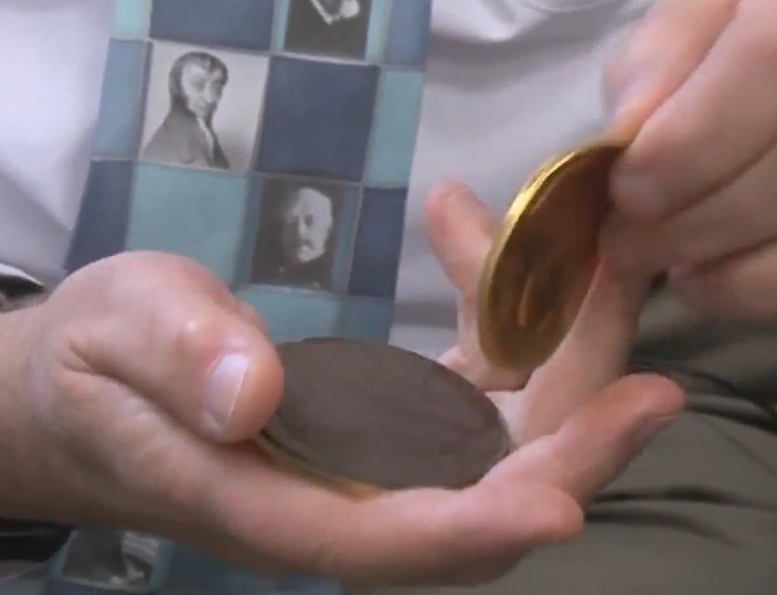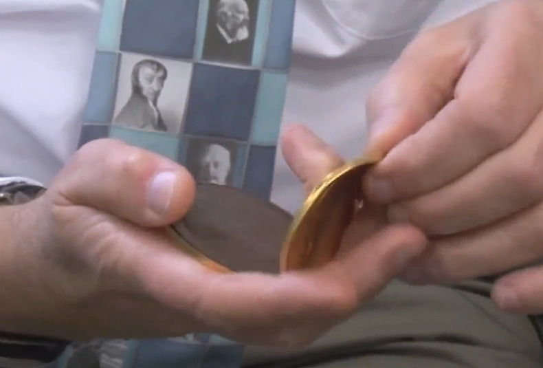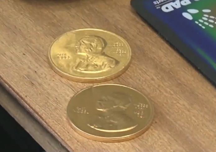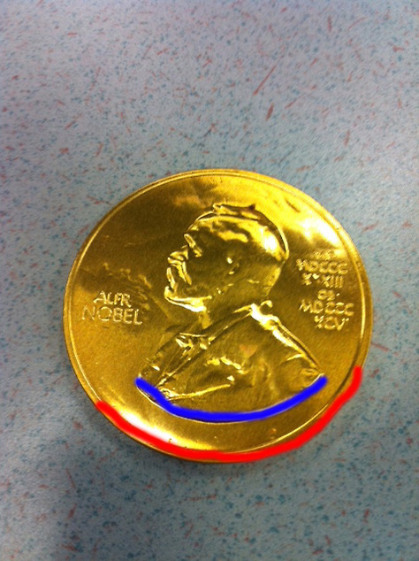 아래는 위 동영상에서 캡춰한 모조 노벨상 메달 사진입니다.