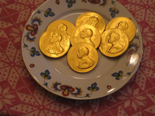 야매로 만든 모조 노벨상 메달(금속 제품)들도 모양은 진짜와 같습니다. 초콜렛 메달과는 다르지요.