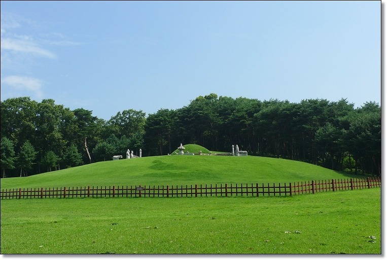 문인석,무인석, 장명등 그리고 봉분을 에워싸고 있는 난간석(欄干石), 명풍석(屛風石), 망주석(望柱石)의 조각 그림들을 살펴보면 뛰어난 기능을 넘어선, 마음을 느낄 수 있다. 반면 이웃에 있는 아들 정조(正祖)의 봉분에는 난간석도, 병풍석도 없이 매우 검소하다.