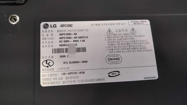[천안PDPTV수리]LG 피디피 TV 사설수리점 LG티비 42PC1DB2 티비를 시청중에 갑자기 퍽소리후 꺼진후 TV를켜면 딸깍거리는소리만 반복하는 고장으로 천안에서