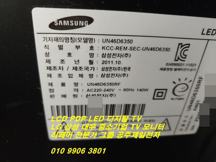 대전 티비 수리 삼성46인치TV UN46D6350 전원표시등만 깜박이는 고장수리하는곳을찾아 계룡시에서 오셨습니다