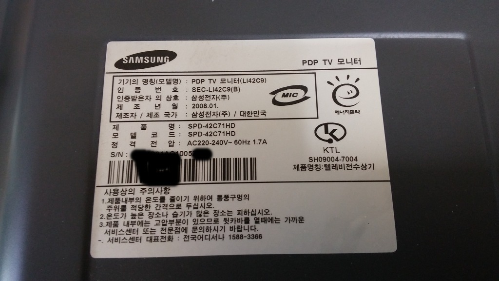[공주PDP티비고장수리]삼성파브PDP티브이SPD42C71HD(LI42C9) 켜면 딸깍딸깍하는 소리만 무한 반복하는 PDPTV 고장수리