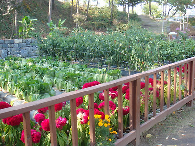 몇주전, 파란고추가,빨갛게익었고, 배추는알차라고묶었네