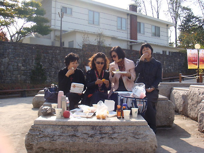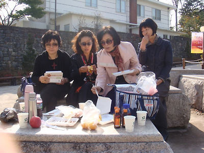 작성자황보숙 작성시간 08.10.31 우리 총무님이 직접 사진까지 챙기시고 수고하셨습니다^^* 근데 얼매나 허기가 졌으면 길 옆 돌벤치에서 맛있는 음식들을 펼쳐놓고 그렇게들 맛있게 드십니까들^^*
