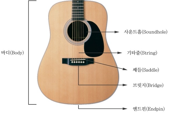 - 브릿지(Bridge) : 통기타의 기타줄을 고정해주는 장치