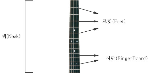 - 지판(Fingerboard) : 통기타에 손가락이 닿는 보드(손가락 보드-핑거보드)