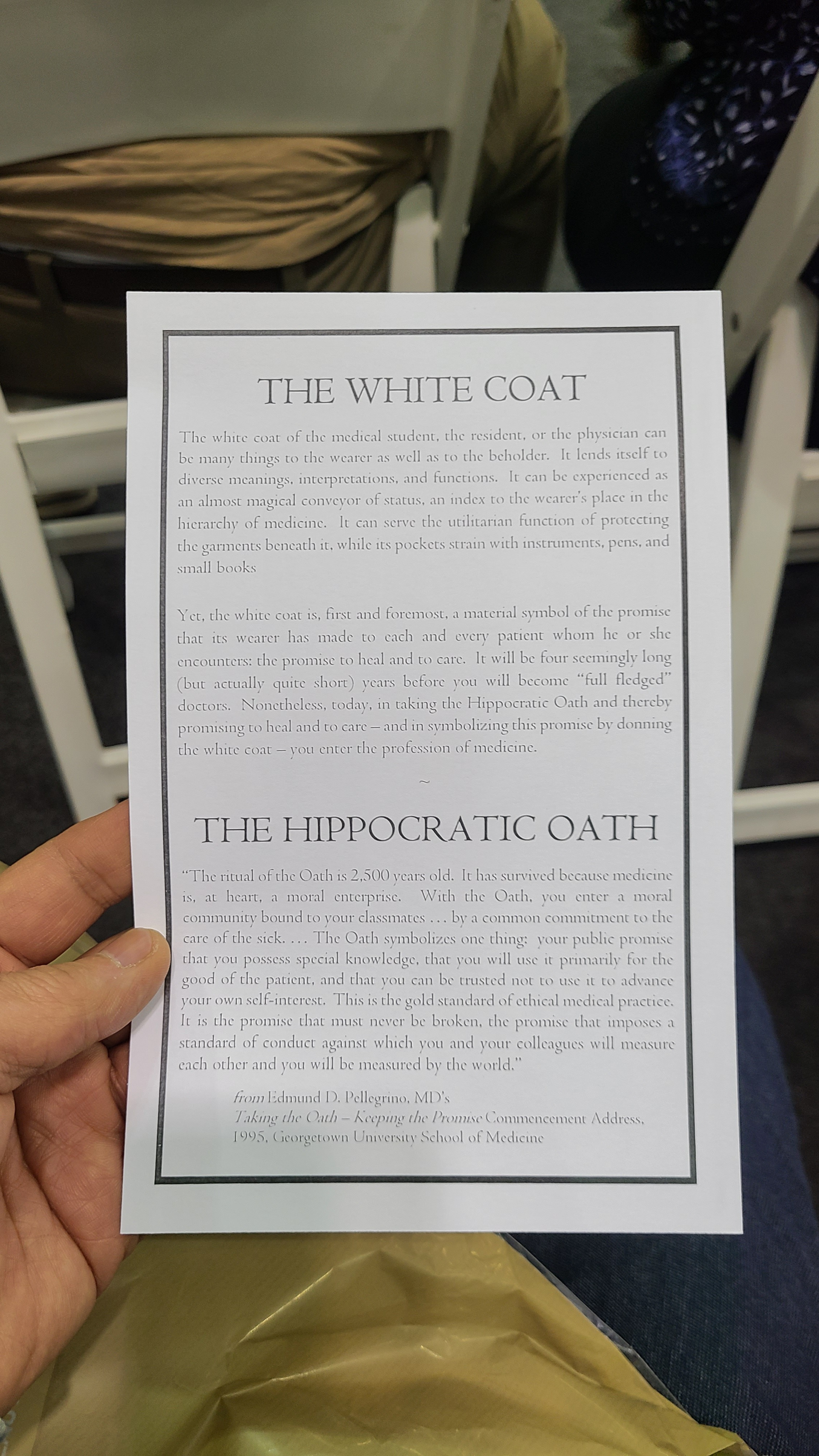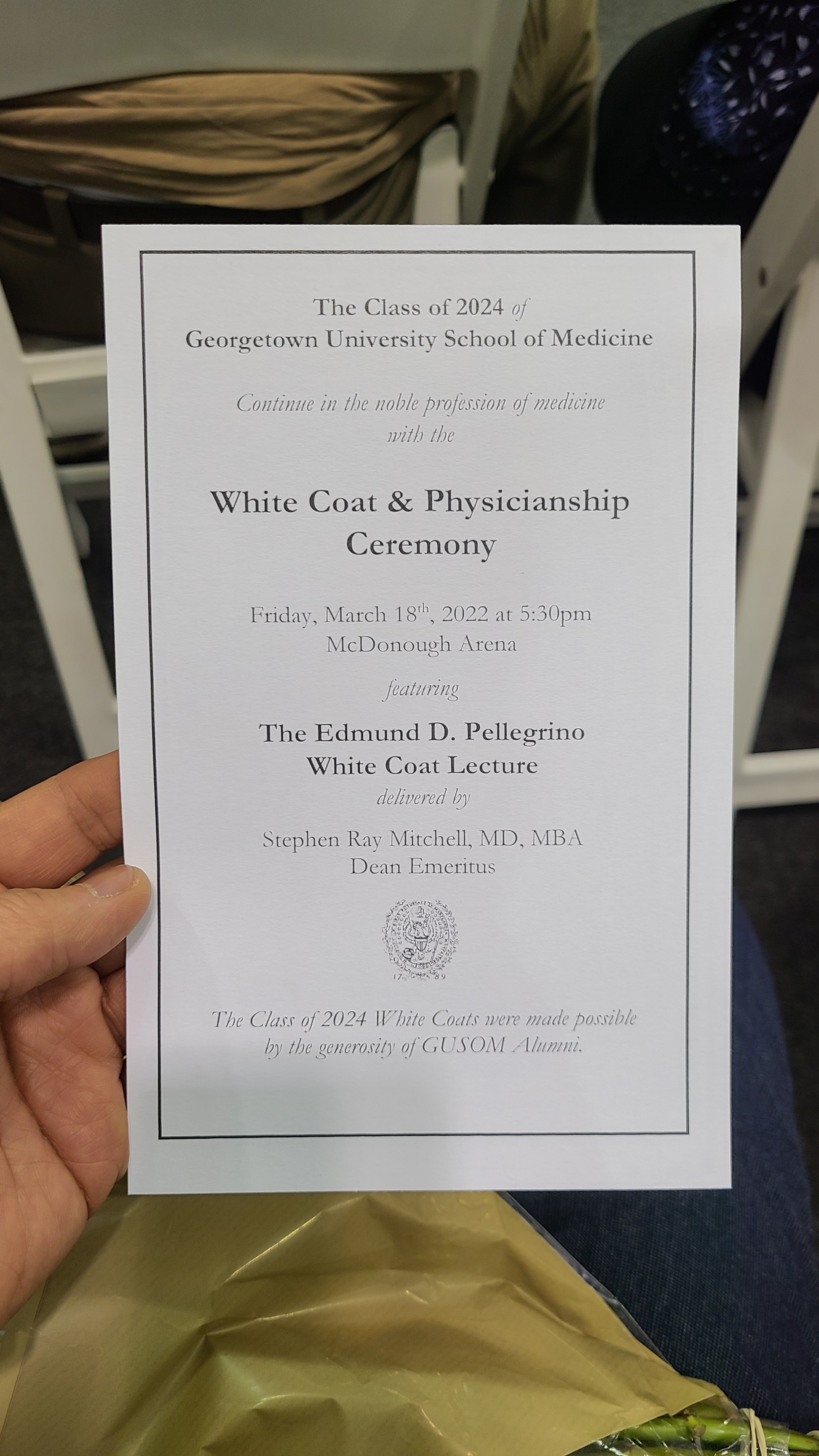 화이트코트 세리머니란 의대 학생들에게 의사의 상징인 흰 가운을 처음 입혀주고 의사라는 직업의 의미를 되새기며 예비의사로서 갖춰야 할 사명감, 책임감, 생명존중의 정신을 다짐하는 행사인데요. 조지타운의대 에서는 보통 입학후에 합니다. 그런데 코로나때문에 그냥 넘어간게 서운해서 3학년때 다시하게 되었다네요. 참석하게되어 영광이었습니다. 매일 기도해주신 어머니와 열심히 뒷바라지 해준 집사람, 열심히 공부하는 첫째에게 큰 감사를 드립니다. 끝까지 잘 마쳐서 많은 생명을 살리는 좋은 의사가 되기를 기도합니다.