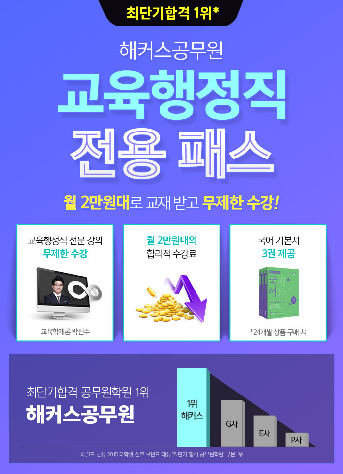 해커스공무원 교육행정직 전용패스 월2만원대로 교재까지 받고 준비하세요
