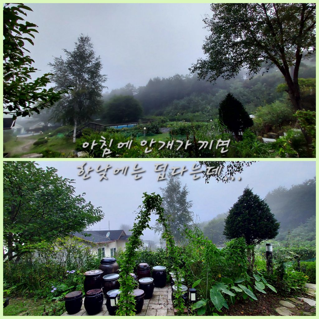 오늘 아침은 안개가 자욱하고 꽤 선선하다.