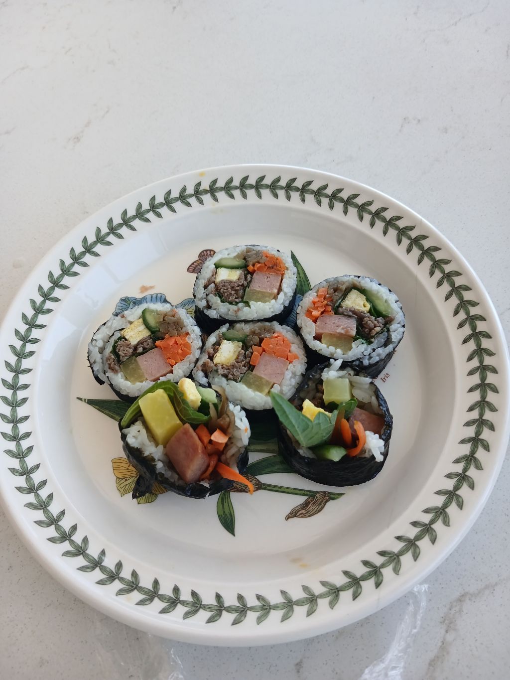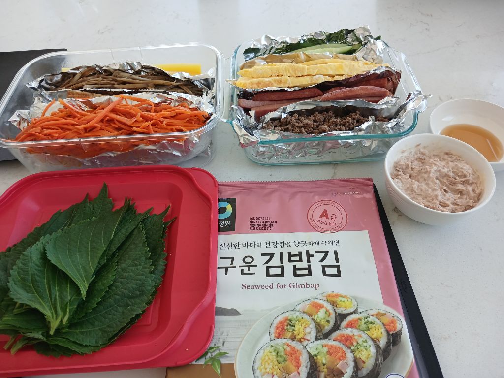 소고기 김밥 10줄 참치김밥 10줄 총 20줄 말아서 김밥잔치를 하고 겨우 접시에 몇개는 사진은 찍으라고 남겨줬네요ㅎ