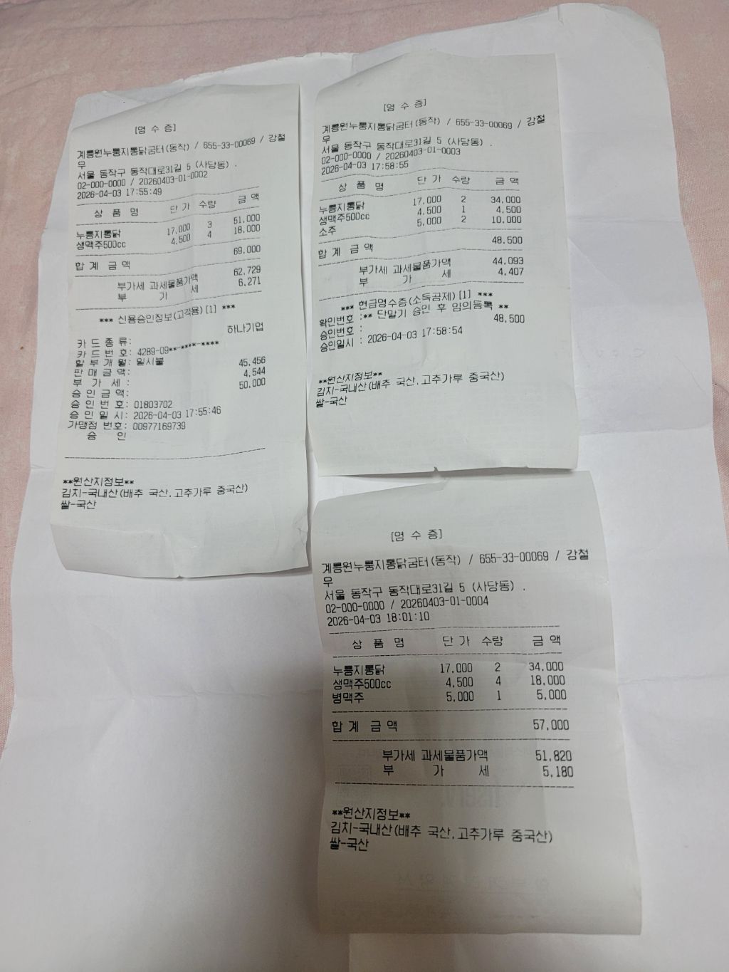 ▣ 영수증 사진 ↓ ↓ ↓