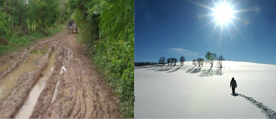 옛날 수레가 다니던 길은 흙길이었다. 겨우내 얼었다 녹은 땅은 질퍽거렸고, 비가 온 뒤에는 푹푹 빠질 정도로 물컹거렸다. 그래서 수레가 지나간 곳에는 선명하게 푹 파인 바퀴 흔적들이 남았다. 이곳을 뒤이어 가는 수레는 편하게 갈 수 없었다. 앞서 지나간 수레의 바퀴 자국들 때문에 이리저리 뒤뚱거리거나 미끄러지기도 한다. 피해 보려 하지만 그대로 밟고 지나 가는게 일쑤였다.