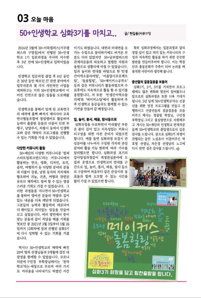 #50플러스인생학교 #50+인생학교동문회뉴스레터 #인생학교_호락호락 #뉴스레터호락호락 #인생학교뉴스레터3호 #호락호락3호 #뉴스레터가이렇게이쁠일 #호락호락 #인생학교뉴스레터 #서울시50플러스 #서울시50플러스인생학교