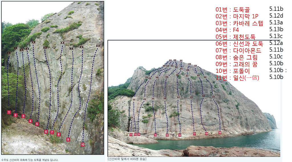 수우도 도둑골 등반을 하시며 그 동안 코스명과 난이도가 확실치 않게 남아 있던 것을