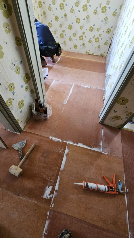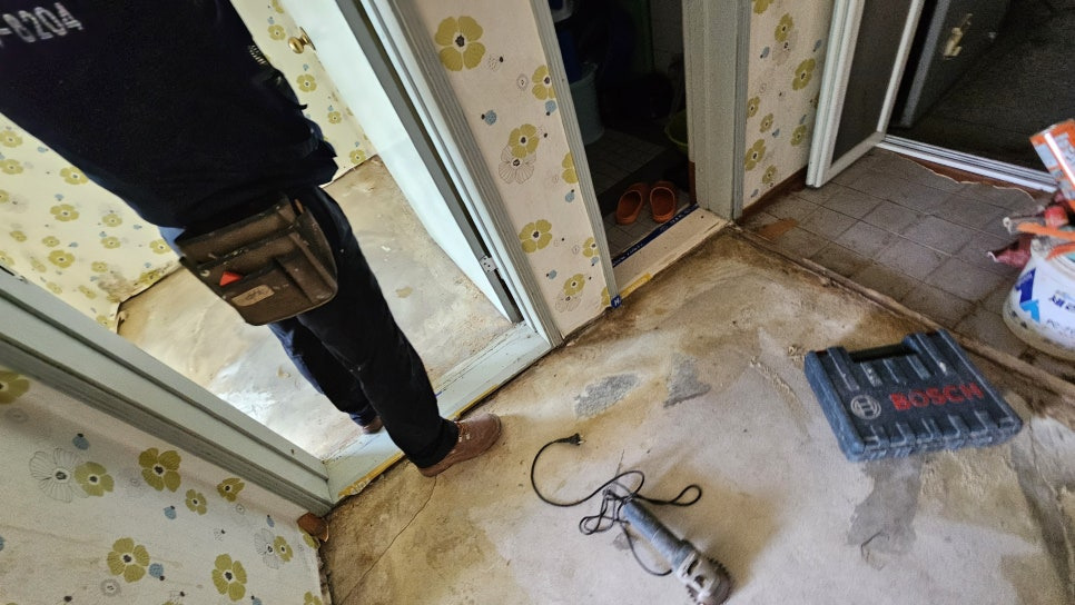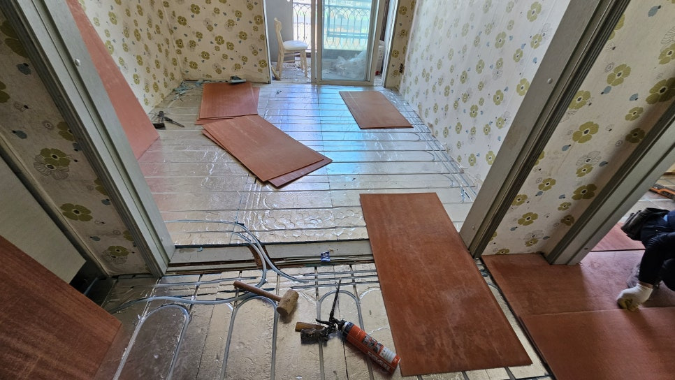 2024년 3월 18일 당일완료 되었으며 인테리어(설비) 사에서 장판으로 마감 할 예정입니다.
