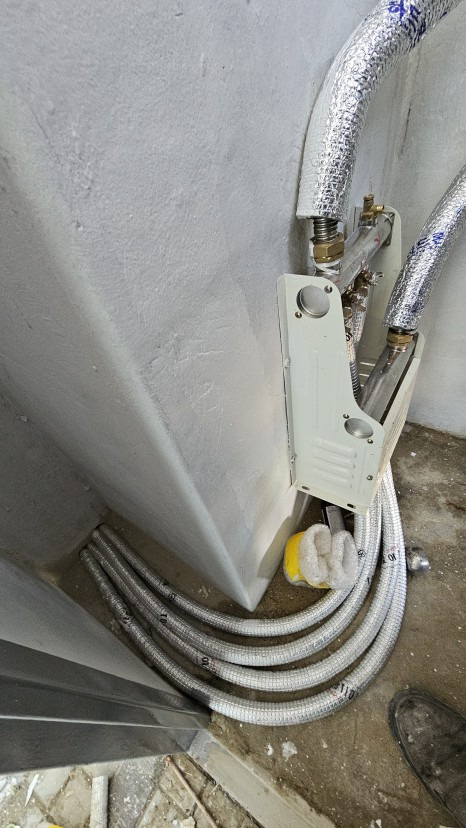 25T온수패널+내경12A PE-XL+6T온돌보드 =시공두께31mm + 2난방분배기+도시가스보일러 연결