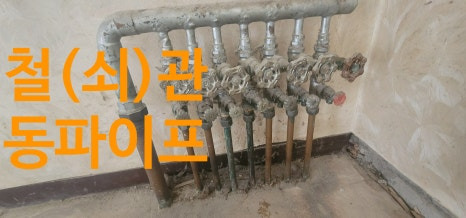 30년 이상 정도 되는 건축물인 경우는 난방 배관 재질이 동파이프이고 구경은 주로 12A입니다