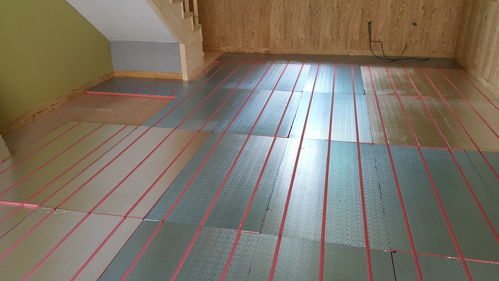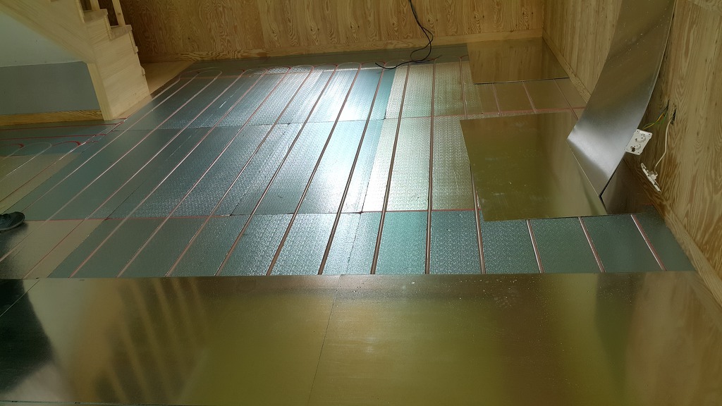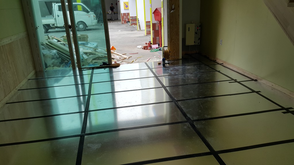 온수패널내 엑셀파이프를 삽입하고 열전도 강판을 덮고 고정 처리 하였습니다.