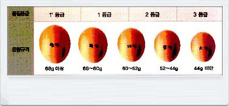 계란등급판정은 계란의 신선도와 내용물의 상태에 따라 품질을 1+등급, 1등급, 2등급, 3등급으로 구분하고 무게에 따라 왕란(68g이상), 특란(68~60g), 대란(60~52g), 중란(52~44g), 소란(44g 미만) 등 5종류의 중량규격으로 구분하게 됩니다.