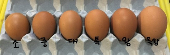 우리나라의 5가지 등급은 소란, 중란, 대란, 특란, 왕란 순서에요.